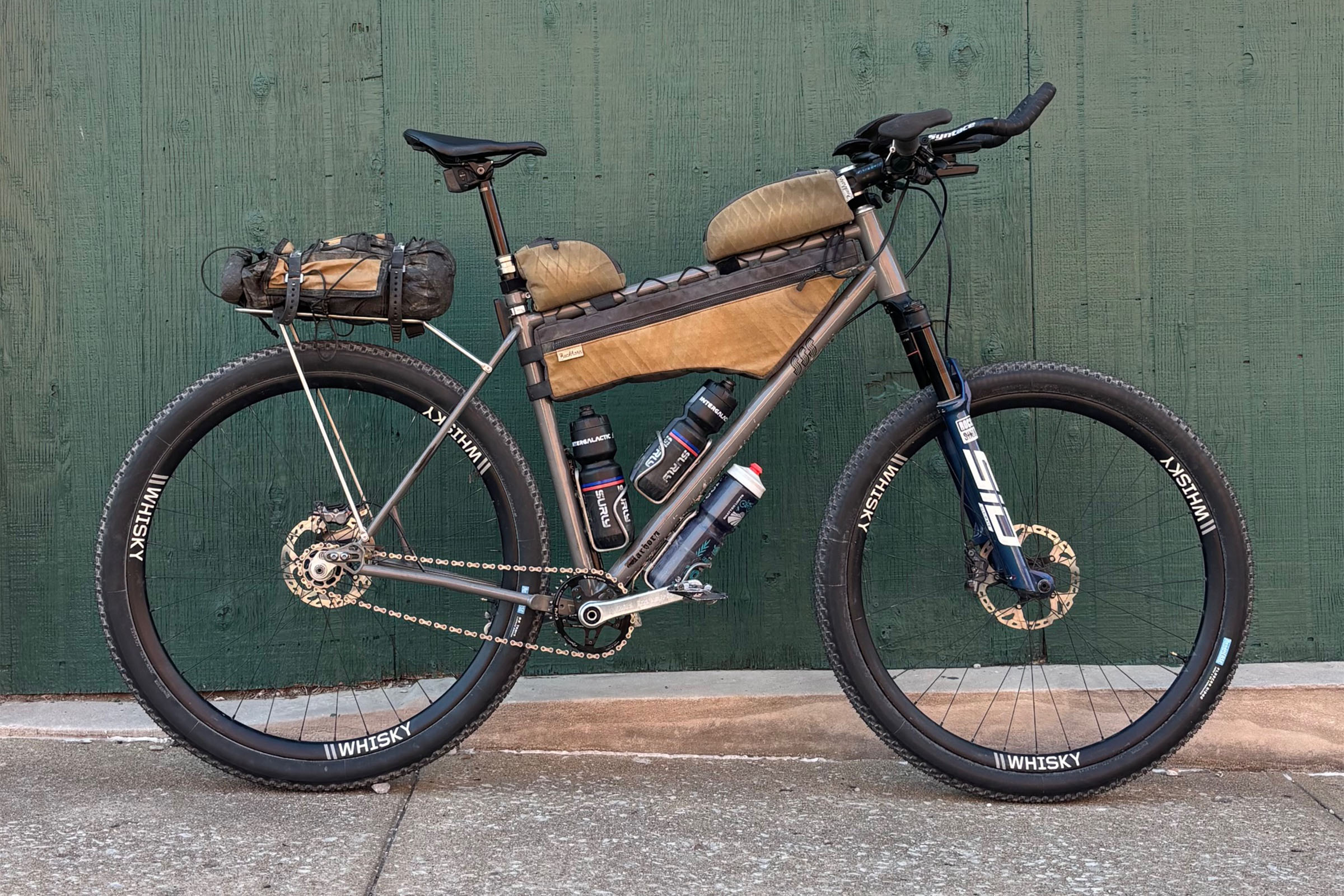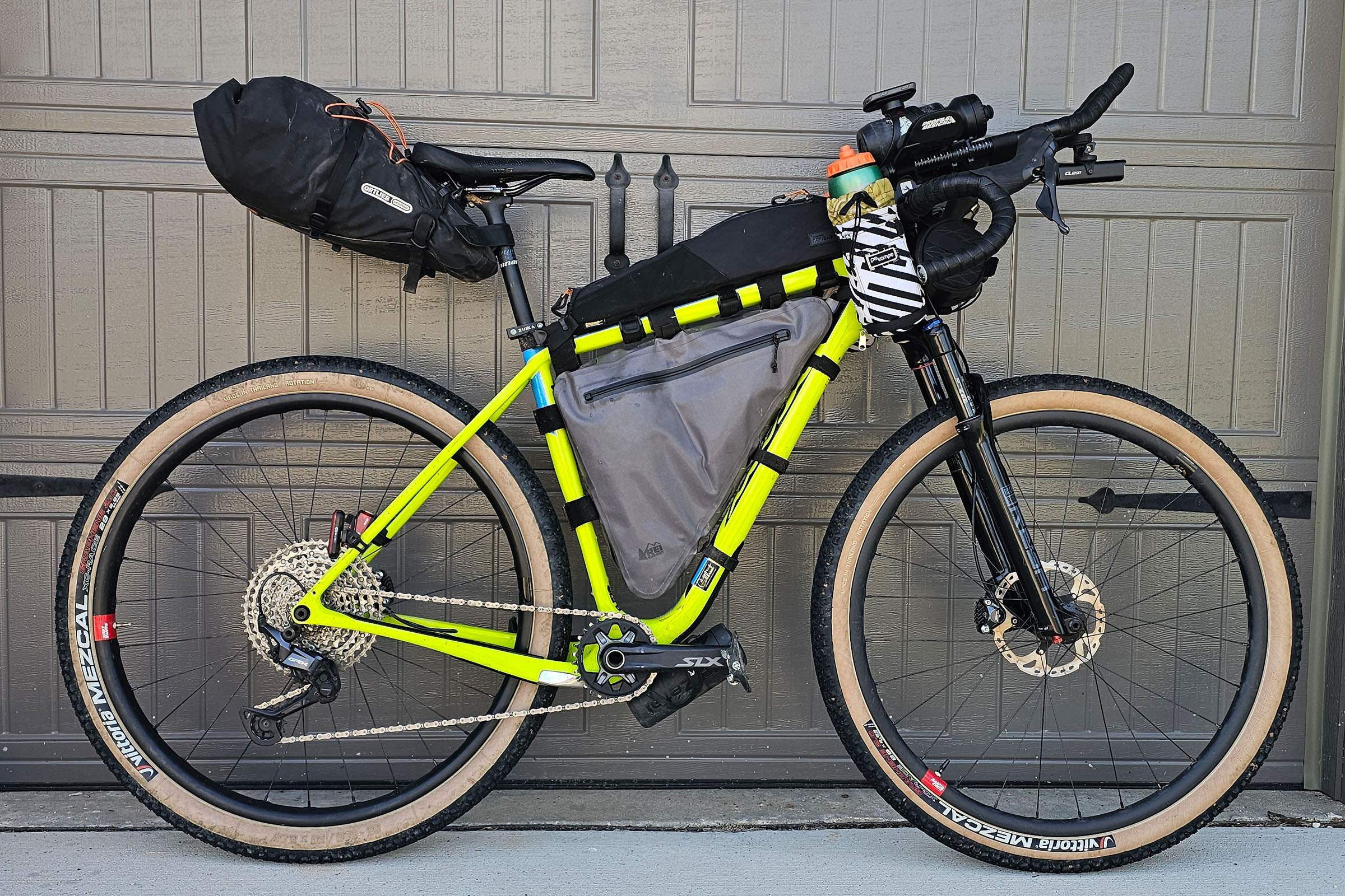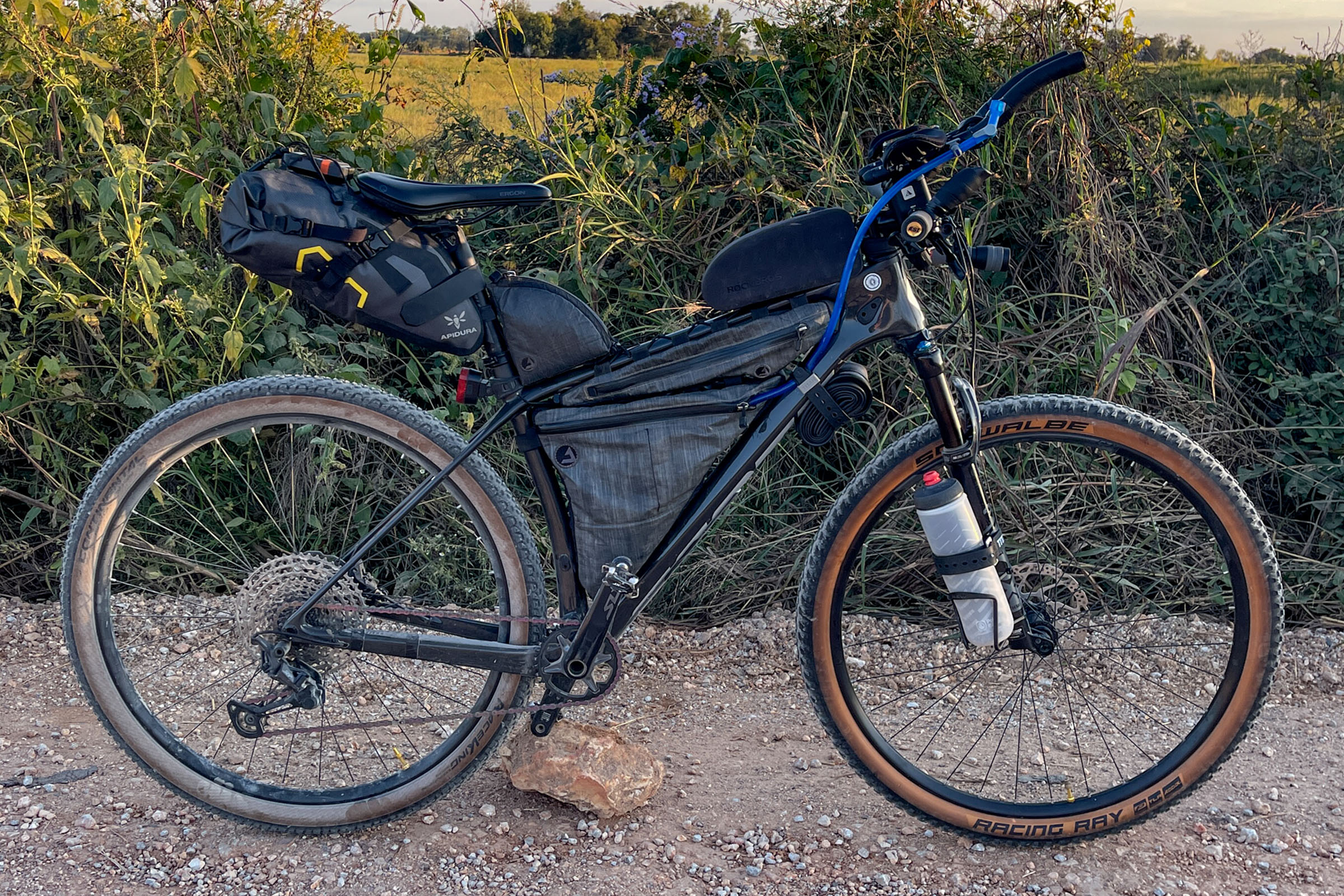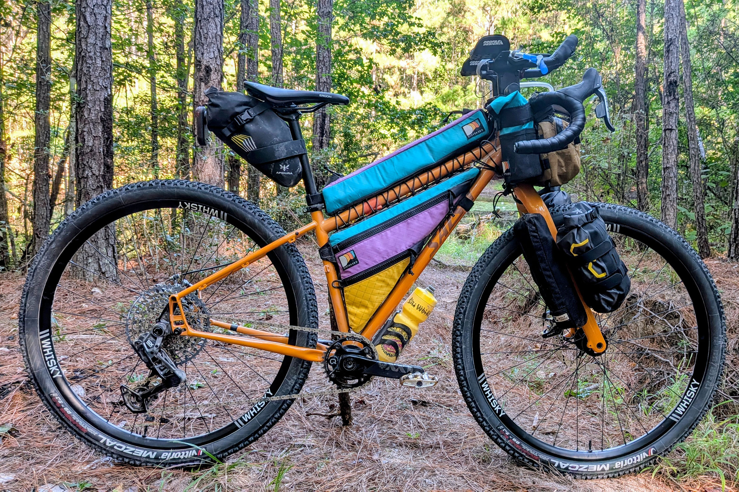 BAGS: The Dispersed frame bag with a 3L hydration bladder is the absolute best. A Tailfin AeroPack and a Rogue Panda top tube and handlebar bag will keep the bare essentials safe and secure.