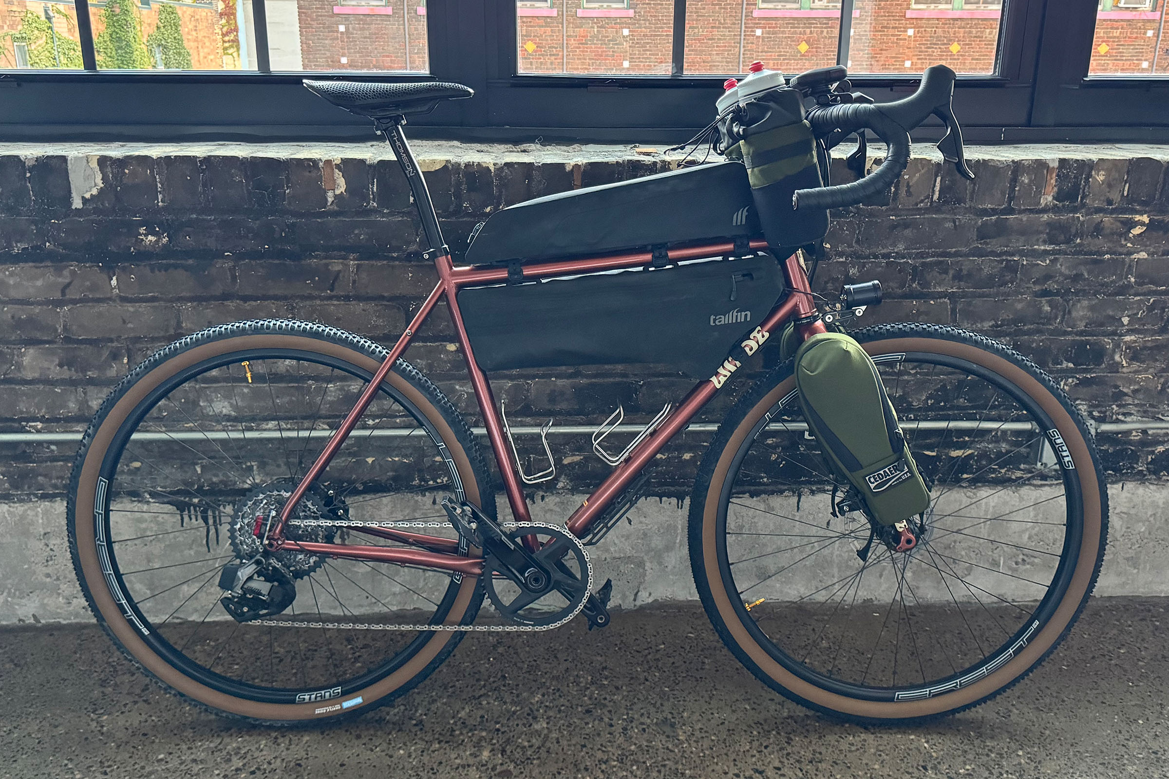 BAGS: South City Stitchworks full top tube bag, frame bag, handlebar bag, and 2x Lebarski stem bags. Porcelain Rocket seat bag harness with a Restrap dry bag.