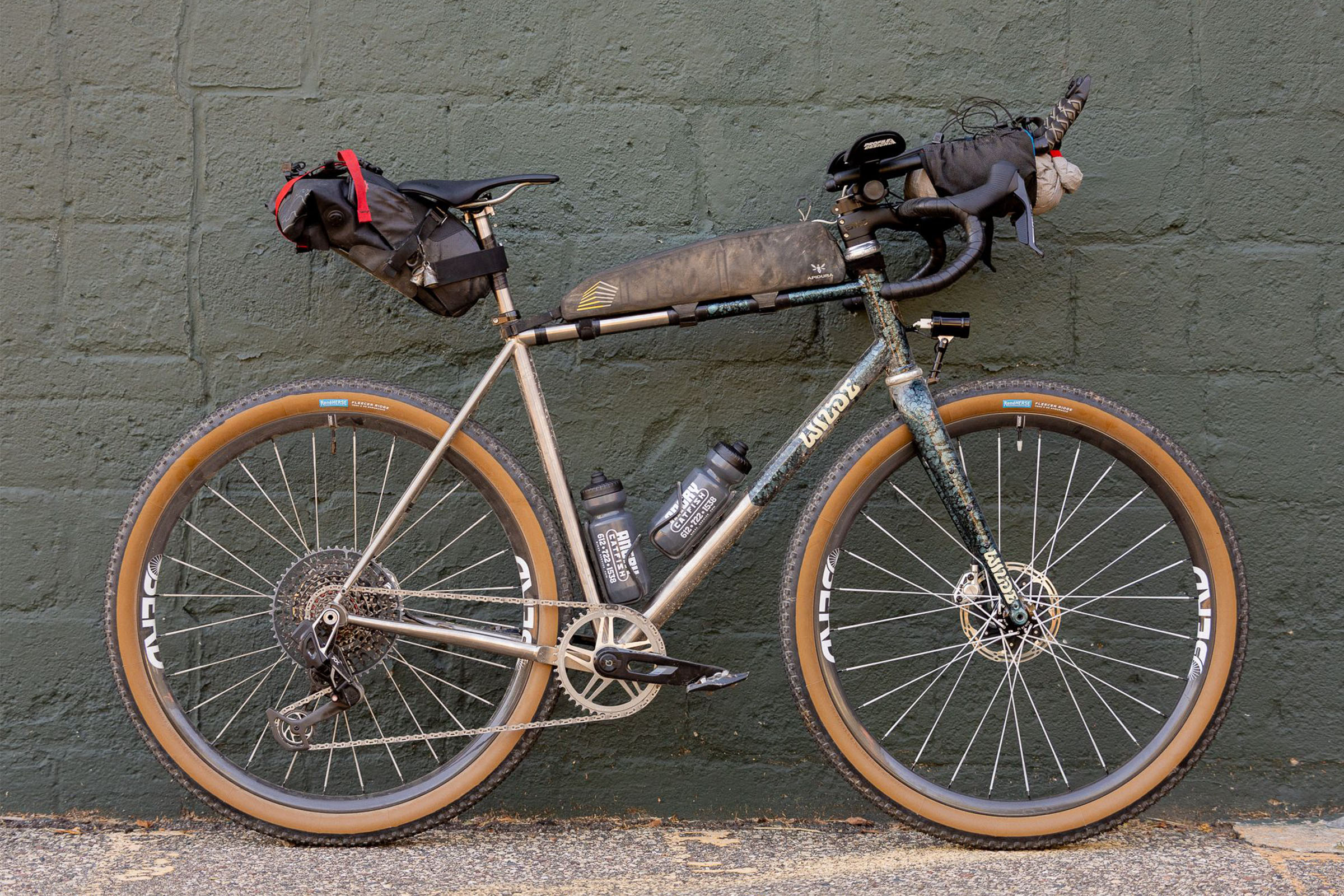 BAGS: Custom frame, top tube, and stem bags from South City Stichworks. Tailfin bags on the front and back.