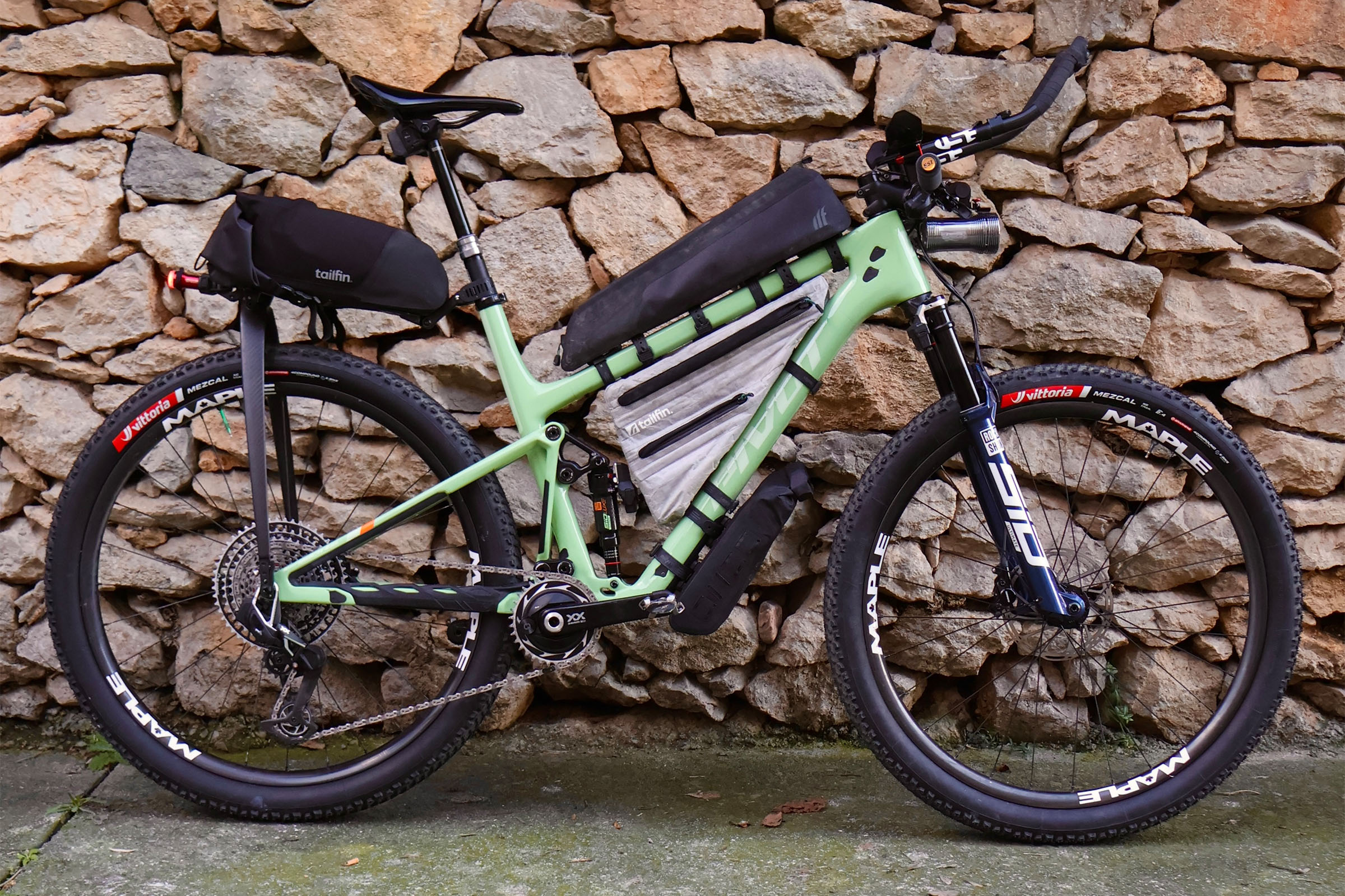 BAGS: 18l Tailfin Cargo Rack, 3l Tailfin Toptube Bag, 4.5l Apidura Frame bag (1.5l Water).