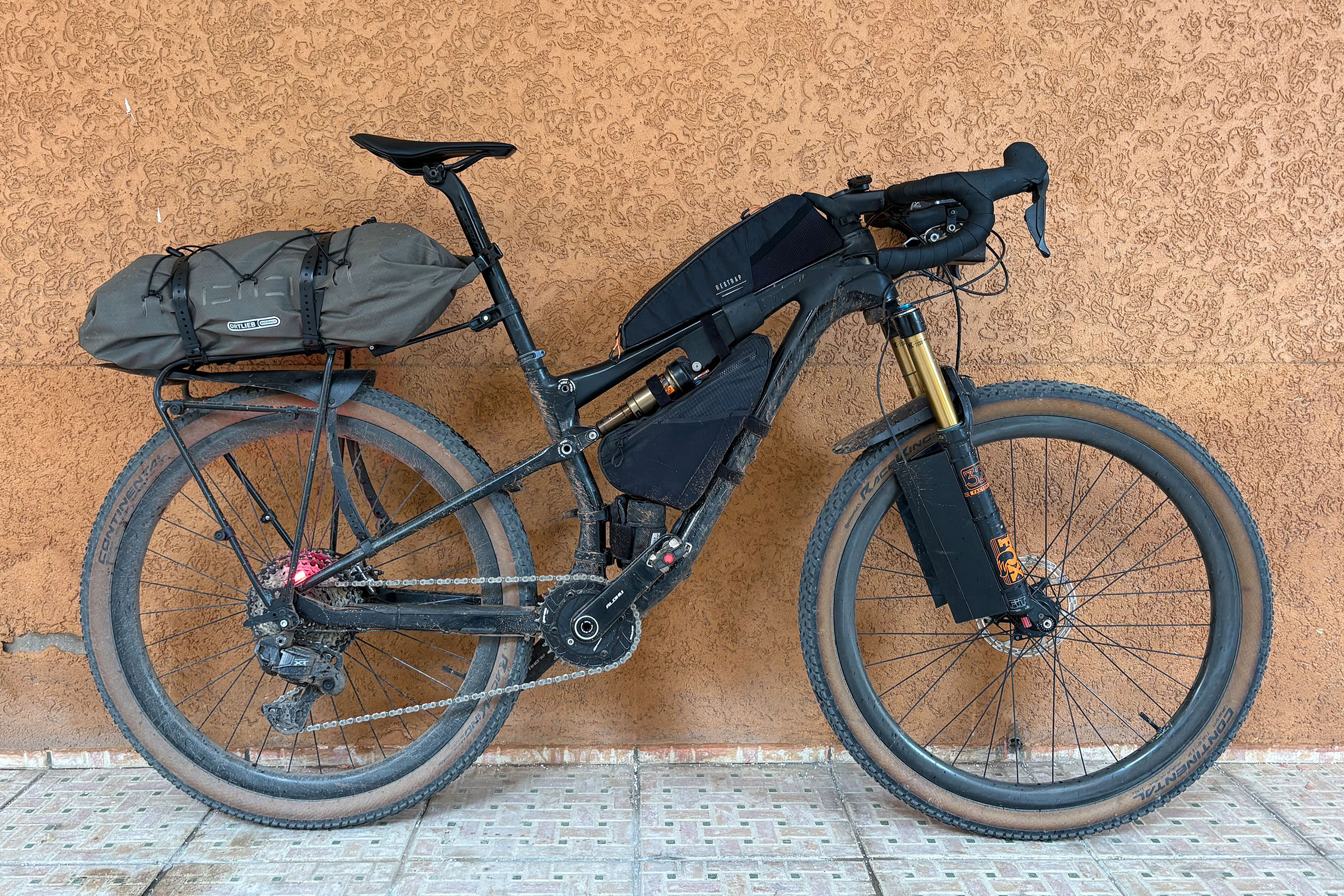 BAGS: A mix of Tailfin cargo bag, two 5L panniers, down tube bag, an Apidura top tube bag and two food pouches, one from Cyclite and one custom-made from Von Berg Bags. I will also carry a Salomon 12L vest with another 2.5L of water capacity.