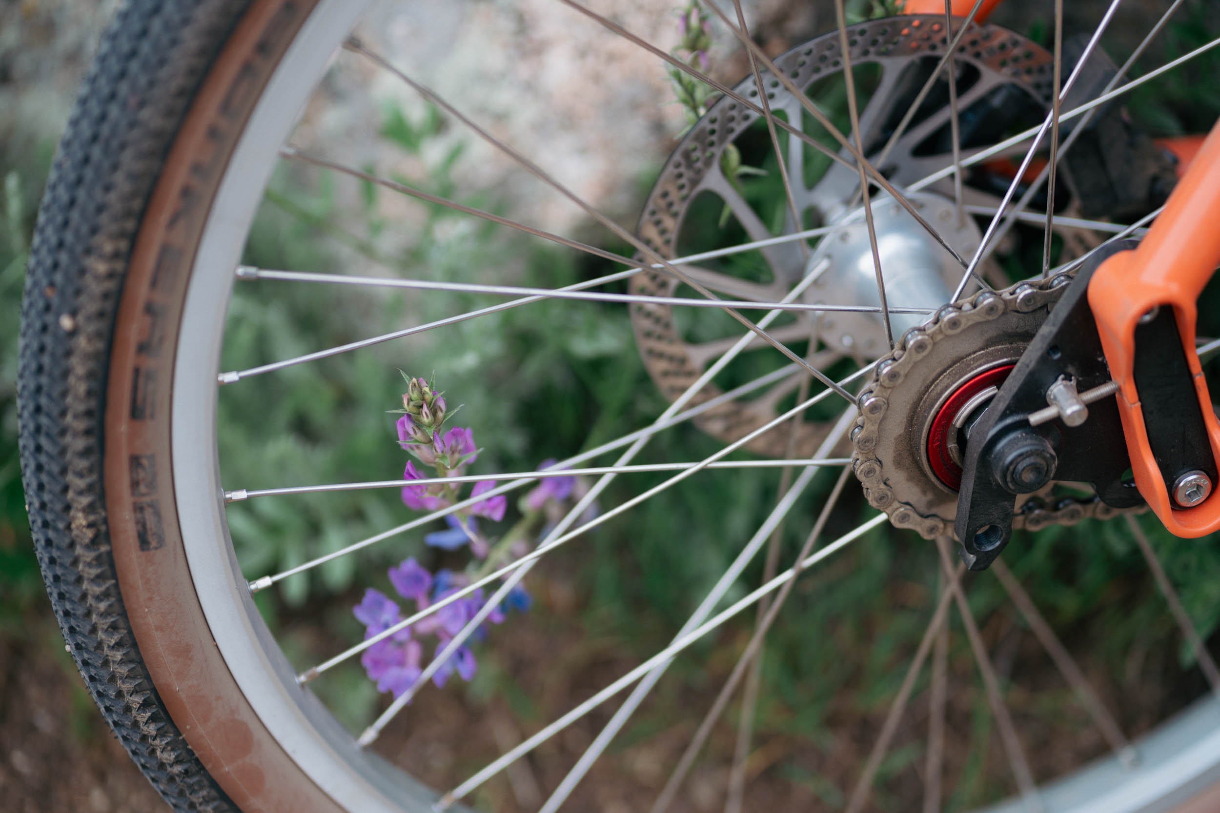 - Rear Wheel: Paul hub laced to Sun Ringle Rhyno Lite rim, 24″
