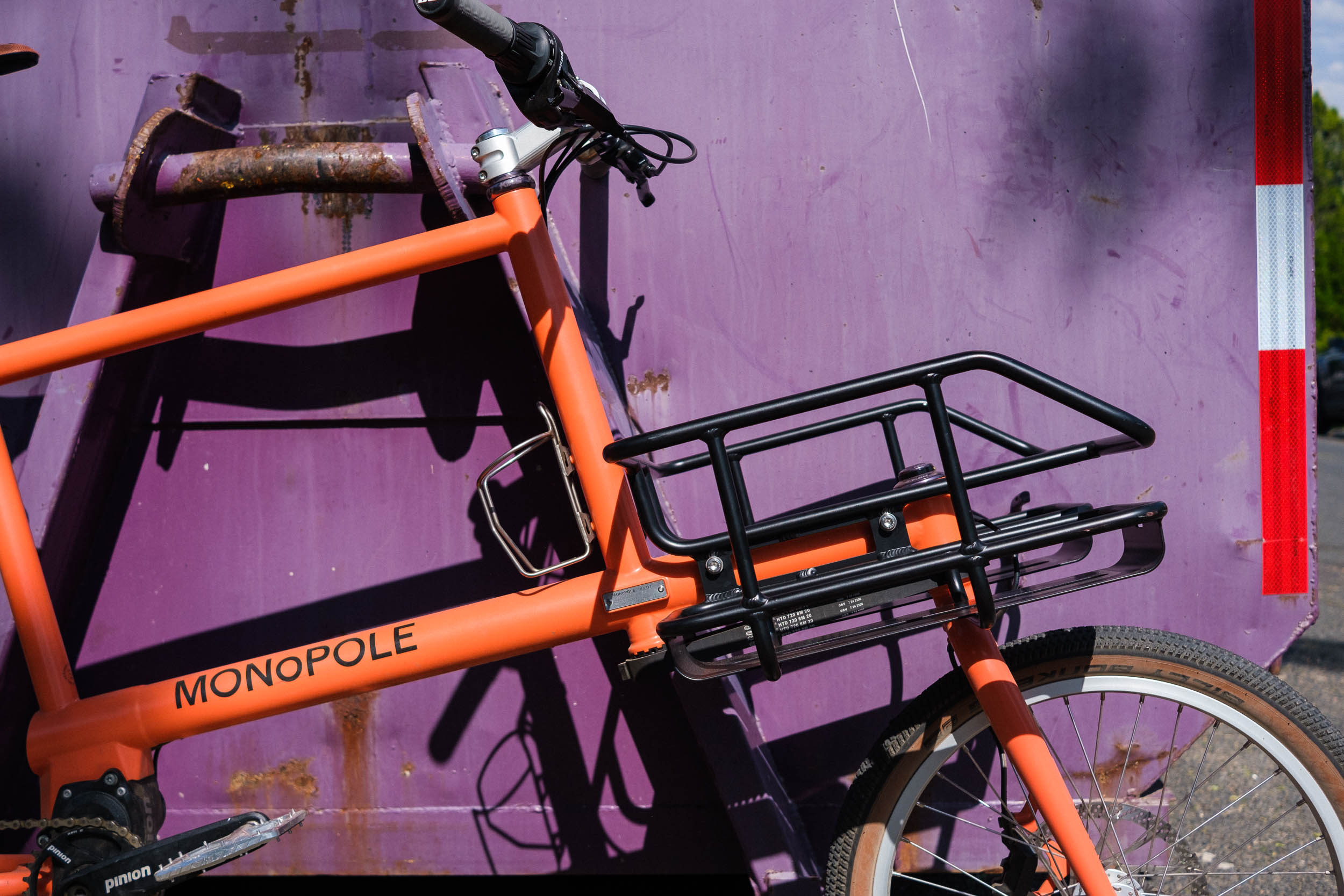 Piloting some cargo bikes can feel like trying to steer a ship, but the Monopole is the best-handling cargo hauler I’ve ever ridden. Unloaded, it’s zippy and responsive. Packed full of groceries or camping gear, it’s predictable and smooth. Monopole is on to something with their belt-drive steering linkage, and the distinctive rectangular frame stands out in any crowd, catching eyes and starting conversations wherever it goes.