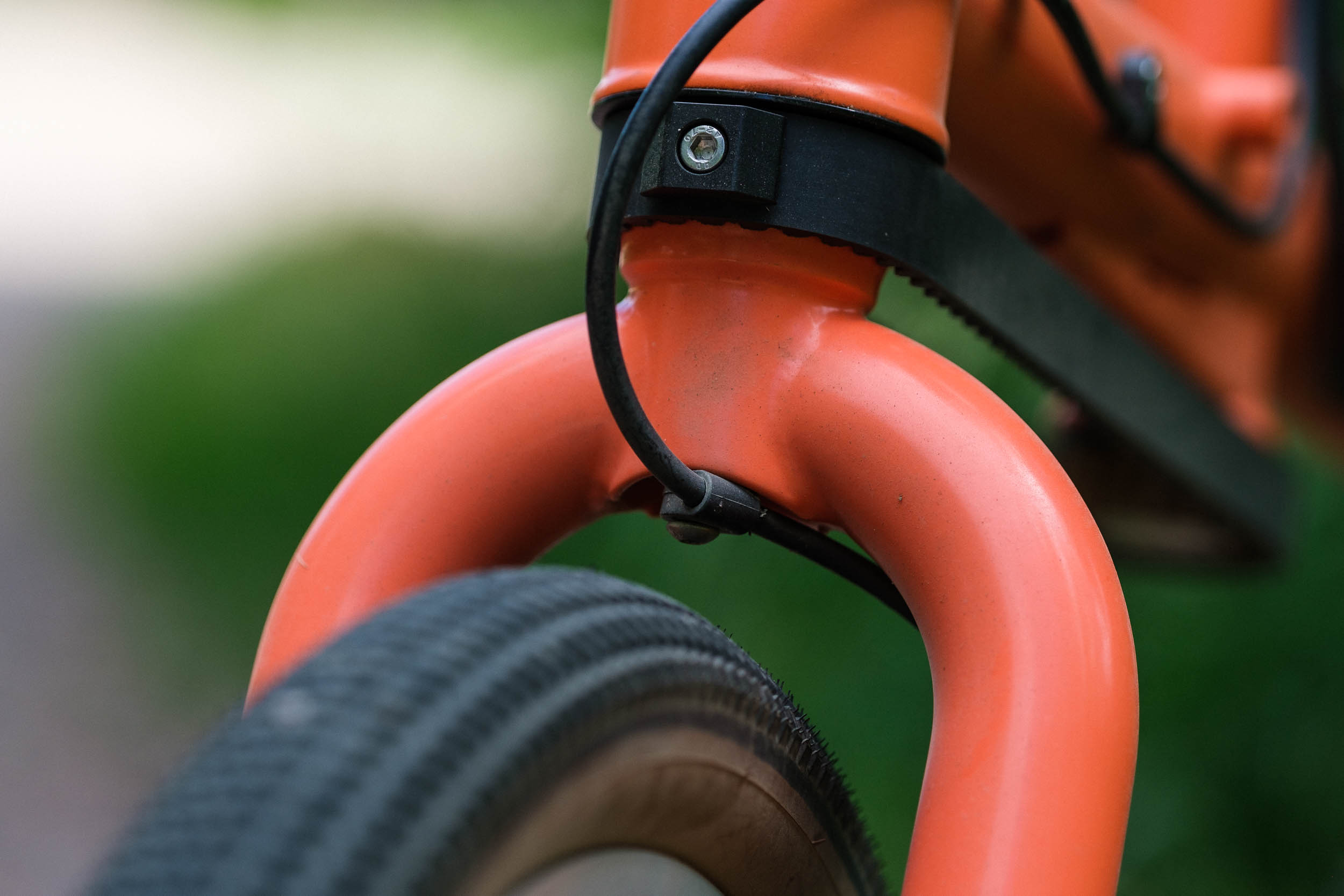 Monopole doesn’t make a kickstand, but it’s possible to add one from another manufacturer—something I wish I’d done. Kickstands are especially useful on cargo bikes. And the single bottle mount looks good visually, but it’s a little lacking in the water-carrying department. Practically and aesthetically, I don’t know where else it would make sense to place another one on a rectangular frame—probably on the seat tube—but it seems like a problem worth solving. My frame didn’t have provisions for a rear rack, but I’ve seen other Monopole frames with them. There’s no routing expressly for dynamo wiring on the frame or fork, which I’d love to see in a future update.