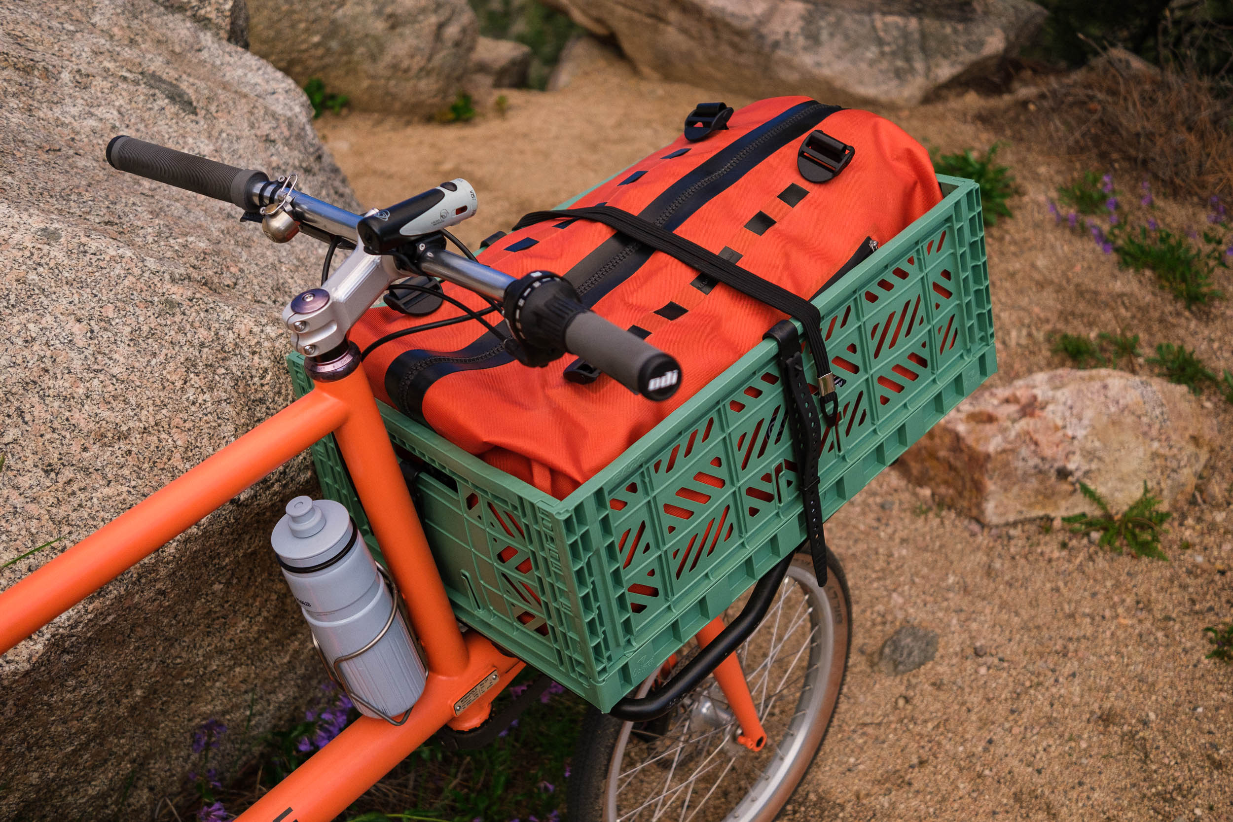 I picked up one of Ortlieb’s new 60L Duffle Lites to replace my trusty 15-year-old OR duffle for travel earlier this year, and it just so happened to fit perfectly inside the Eurobox. I loved having all of my camping gear easily accessible and protected from the elements, and packing and unpacking were a breeze. Cargo bikepacking is one of my new favorite things.