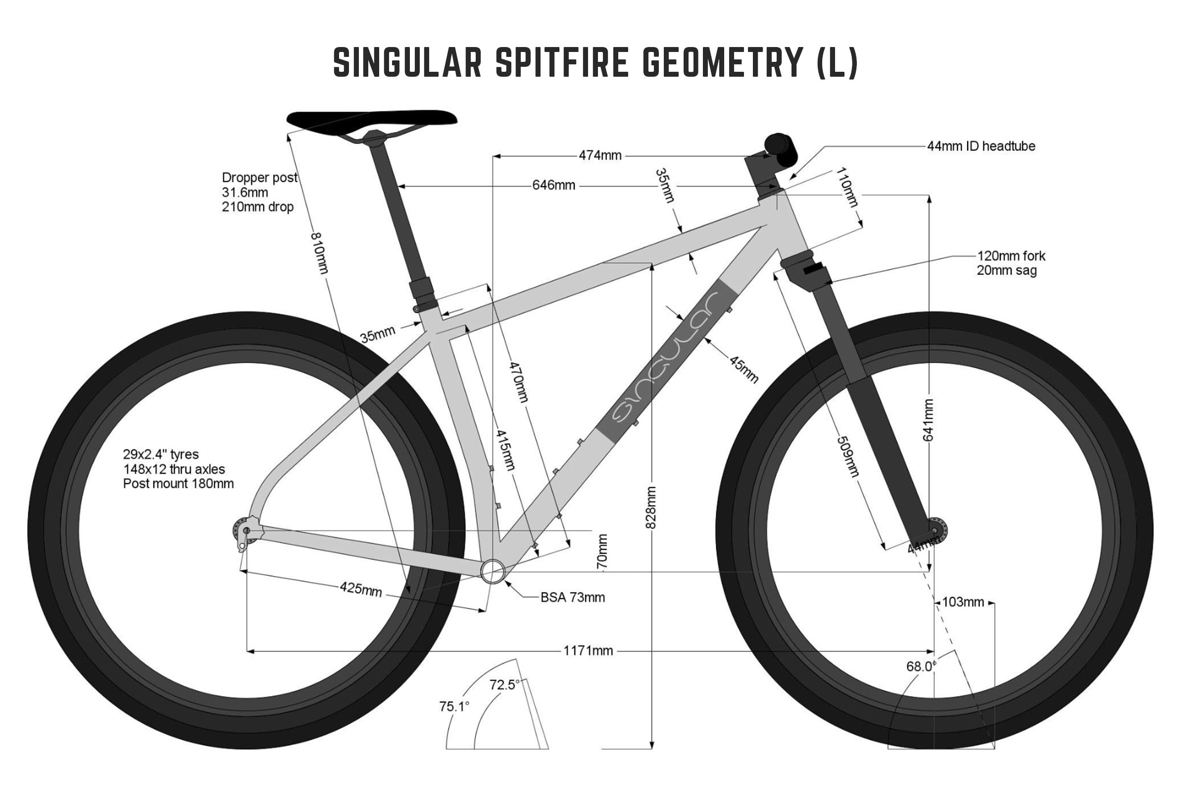 | Singular Spitfire (L) | 474mm | 641mm | 68°/75.1° | 1171mm | 70mm | 509mm |