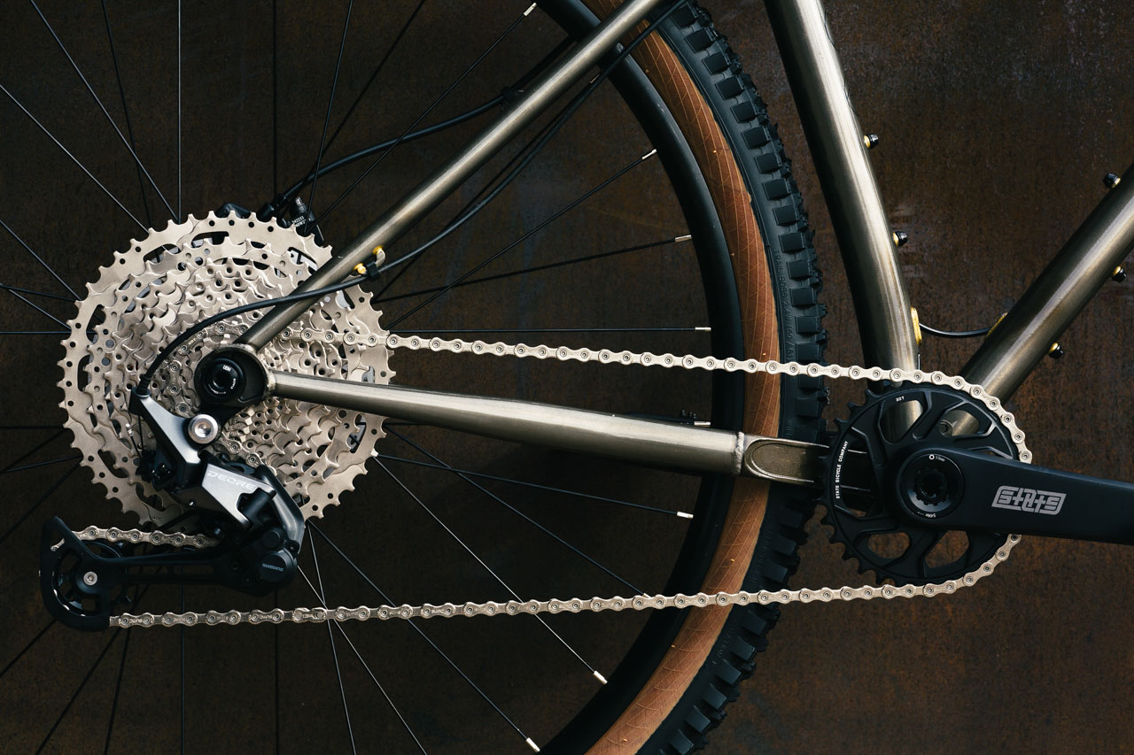 What’s a trail bike? In short, it’s a mountain bike designed without a particular race specialization in mind. A sort of all-around (off-road) bike that can deal with any style of trail. The 4130 Trail’s geometry fits that description well, to my taste, with a neutral 65° head angle and 74.4° seat tube angle. The rear triangle can clear 29 x 2.6” or 27.5 x 3” rubber, and it ships with WTB Trail Boss 29 x 2.4” tires.