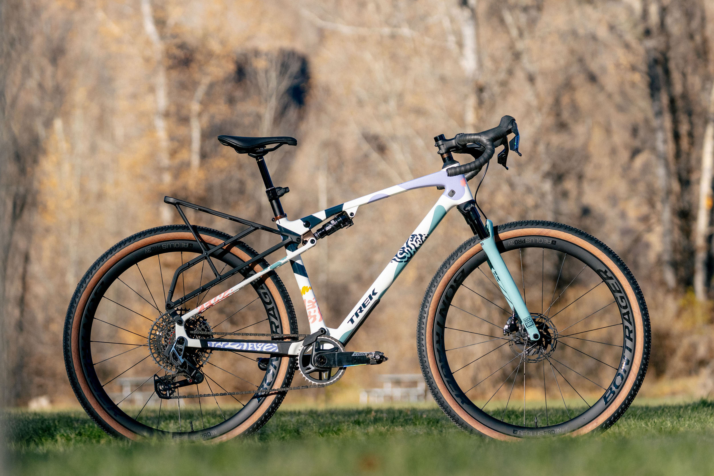 Full suspension gravel bikes aren’t new—the Niner MCR RDO, released in 2019, was one of the first production options—but they are few and far between. This speaks to Trek’s decision to design a bike based on curiosity, rather than demand; otherwise, there would likely be more options available in this segment of the gravel world. The CheckOUT sets itself apart thanks to a nifty integrated rear rack, the option for a custom frame bag, a new rear suspension design, and several other specs and features designed specifically for the CheckOUT frame. Trek really flexed its ability to go all-in with the CheckOUT, and it takes a thorough look at all the details to appreciate just how much went into it.
