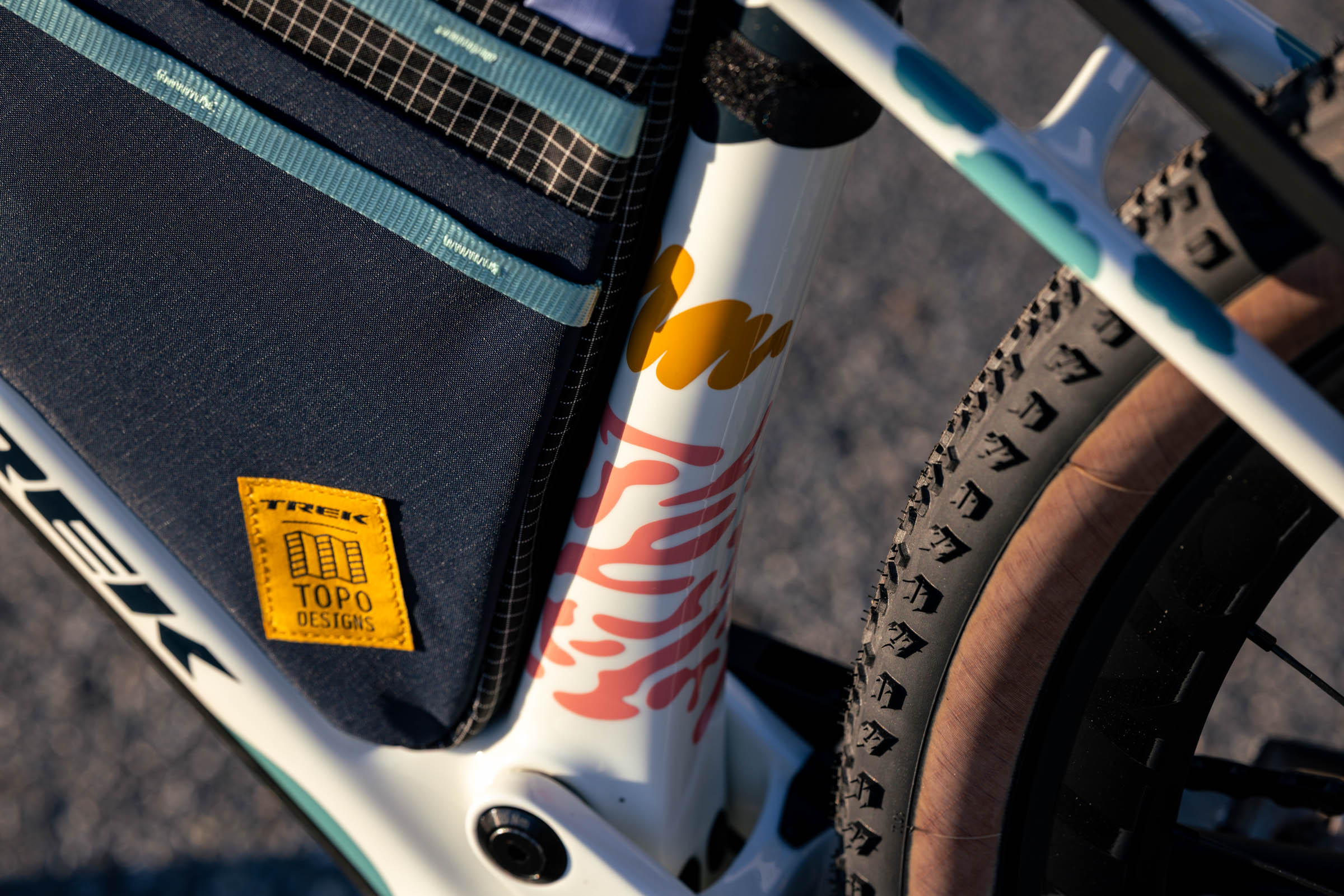 Of course, the frame bag, cargo cages, rack (despite some growing pains), and various mounting points all make loading up the CheckOUT easy. The frame bag, made in collaboration with Topo Designs, does a good job of making the most of every last bit of space inside the main triangle. It’s a sizeable bag on the large frame I was riding, but it’s also one of the narrowest I’ve used, which makes it less ideal for bulky stoves or other wide items. It’s well-built, and I really enjoyed the stretchy mesh exterior pocket on the non-drive side for quick-access items, as well as the thread-on frame bag mounts. Complete builds and framesets come with two of Trek’s new cargo cages, called Multi-Mounts. The aluminum cages have large slotted mounting holes to dial in the position along the downtube channel, which is covered in threaded holes. They can also be used on the rack; they have small strap slots and three threaded holes for mounting a standard bottle cage.