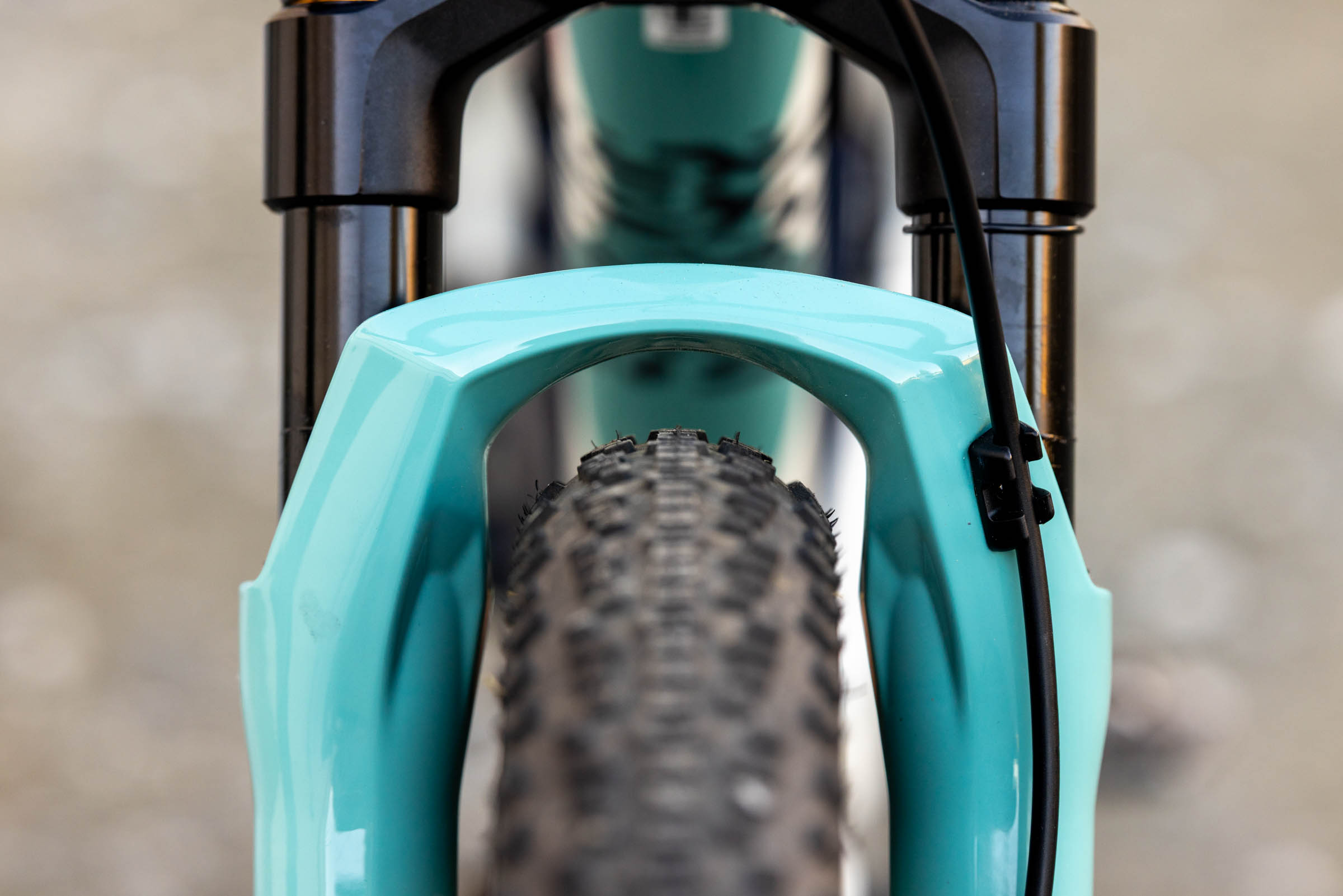 The CheckOUT’s Achilles heel was the slick tread of the Bontrager Betasso RSL GX 700 x 55mm tires. They suit the bike and have proven to be fast-rolling and surprisingly durable, but they simply don’t stand a chance navigating slippery roots and trails during a Pacific Northwest winter. Thankfully, there are mountain bikes for that. The stock 55mm (2.2”) tires measure true to size, with about another 7mm of clearance on both sides out back and closer to 4mm in the fork. It’s safe to say a larger tire would fit in the rear, but there’s limited extra clearance in the RockShox Rudy XL.