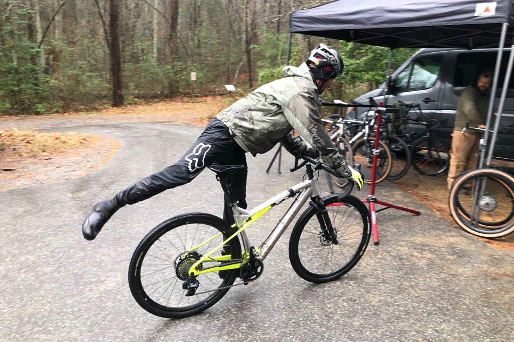 The CheckOUT has a categorically tall standover height due to the top tube’s height, which was designed to maximize the main triangle space for bags and bottles. The size large I’ve been riding is pushing my inseam clearance to the max when straddling the frame, and Neil actually had to switch his M/L out for a medium because he couldn’t fit over its high top tube. Otherwise, as far as fit goes, all I needed to do was flip the 70mm stem on my size large to gain a touch more height up front, and I found myself in a sporty but not too aggressive riding position that felt equally at home on fast one-hour rides and longer, back-to-back days.