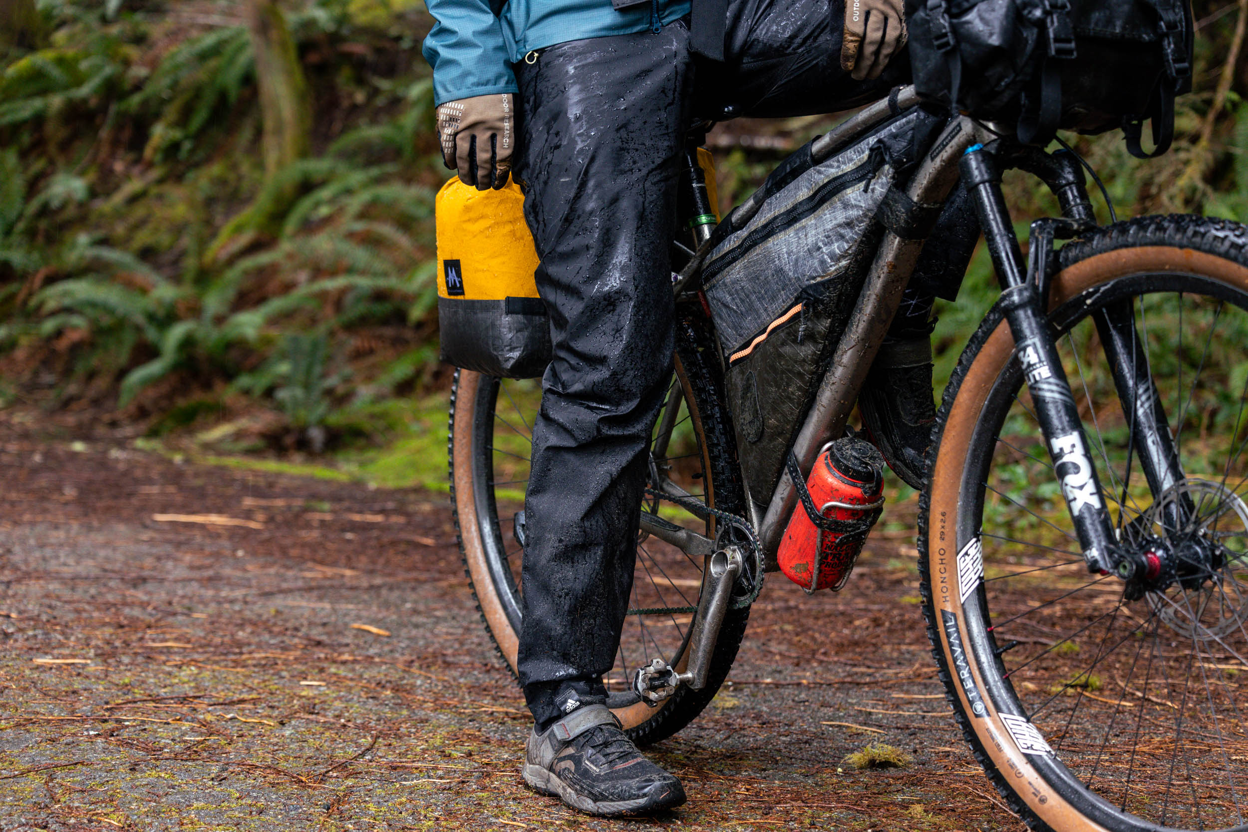 A dependable rain jacket and pants are crucial if you plan to keep pedaling in less-than-ideal conditions, get out in the off-season (like here on the coast of British Columbia), or even commute by bike full-time. In fact, it’s the latter that got me started on this whole rain gear test to begin with. At the time, I was commuting around 50 kilometers round-trip most days, through one of the wettest winters I’ve experienced. It turns out riding a bike loaded with work materials, a change of clothes, fresh shoes, and a lunch isn’t so different from bikepacking.
