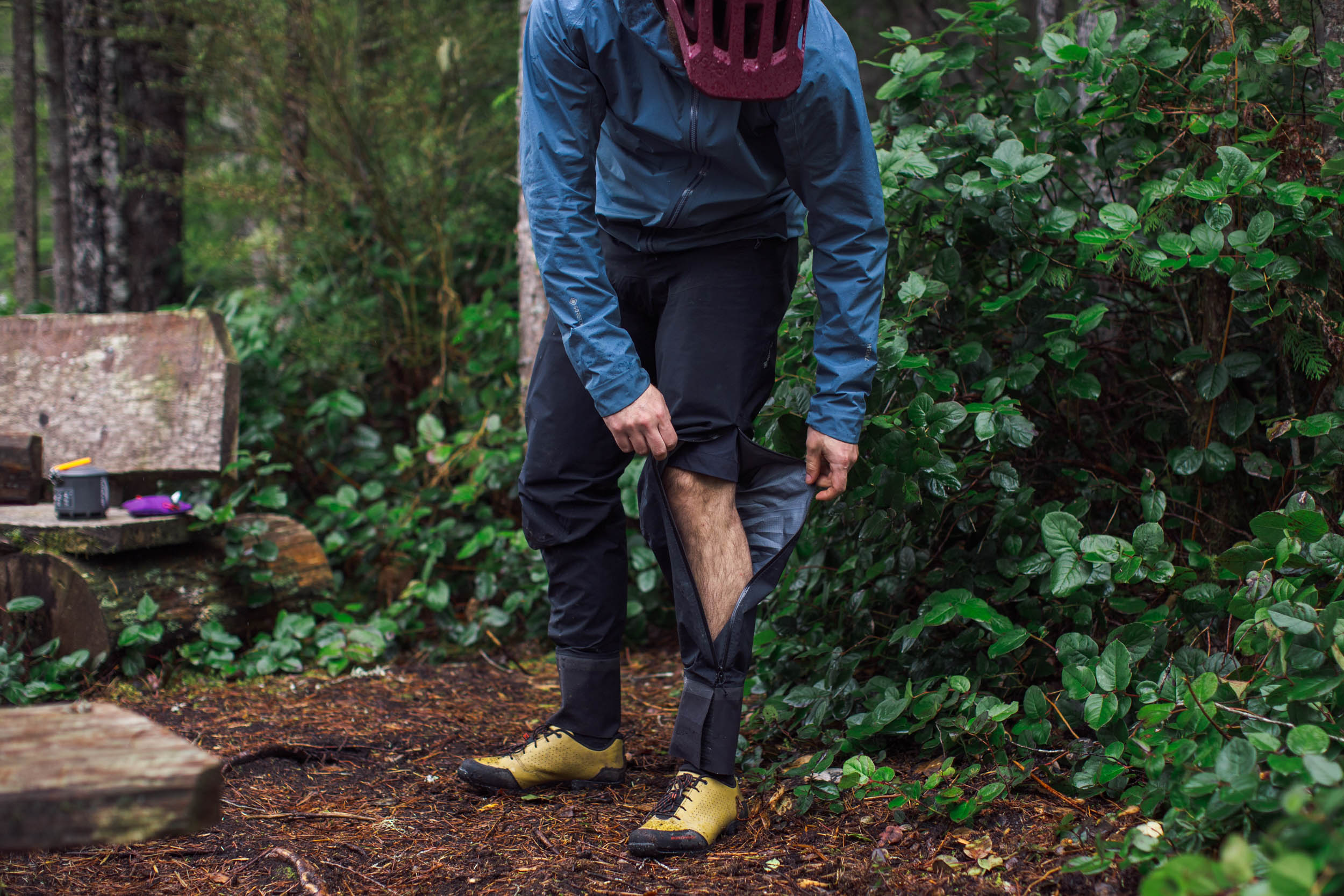 Unlike a rain jacket, which can be easier to manage, poorly fitting rain pants can make it or break the experience. There’s a fine line between too slim and too baggy; the former makes layering difficult, and the latter makes pedaling uncomfortable. Finding that sweet spot is crucial for bikepacking, and having the ability to remove them without taking off your shoes, thanks to ankle zippers, is key when you’re riding through variable conditions.