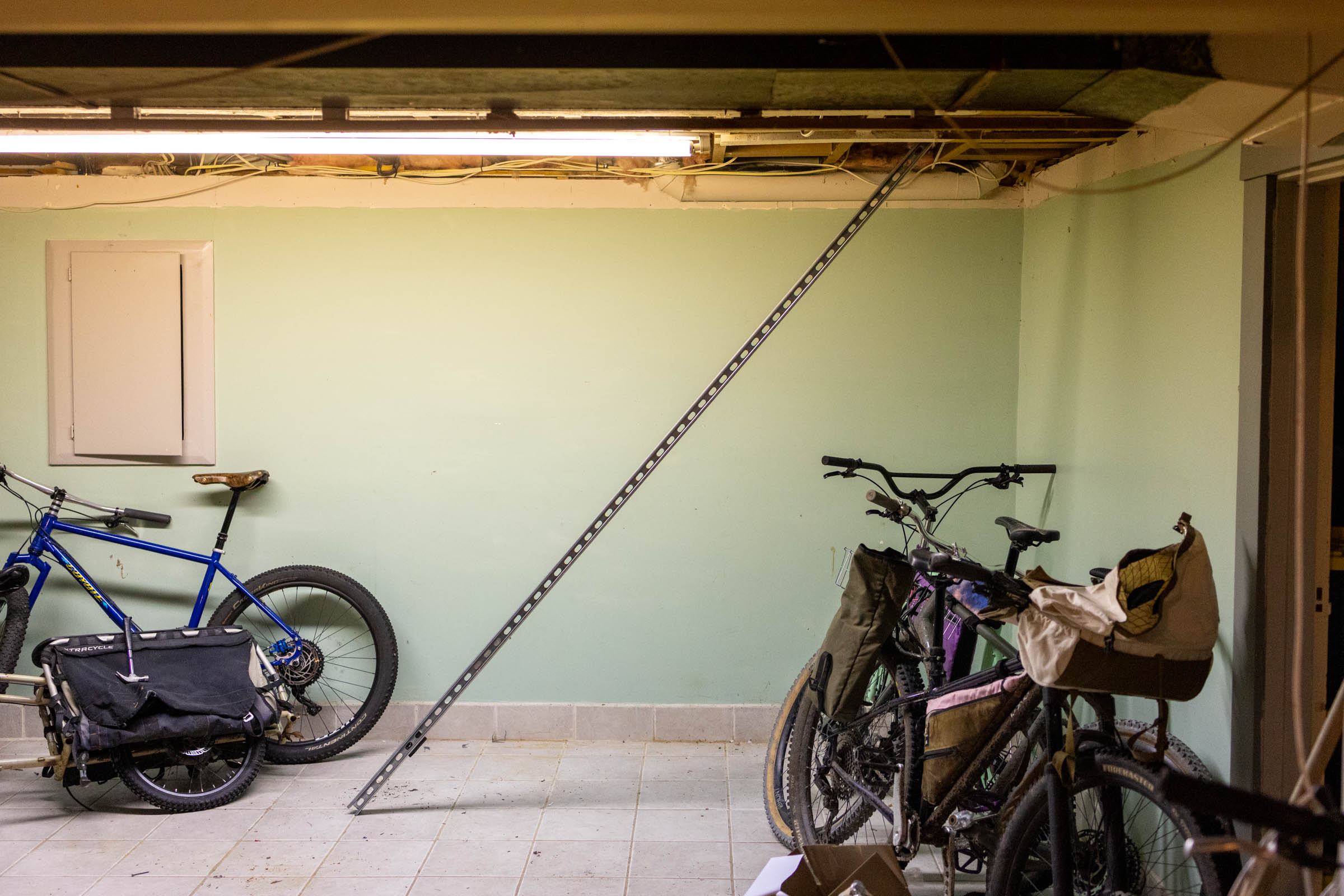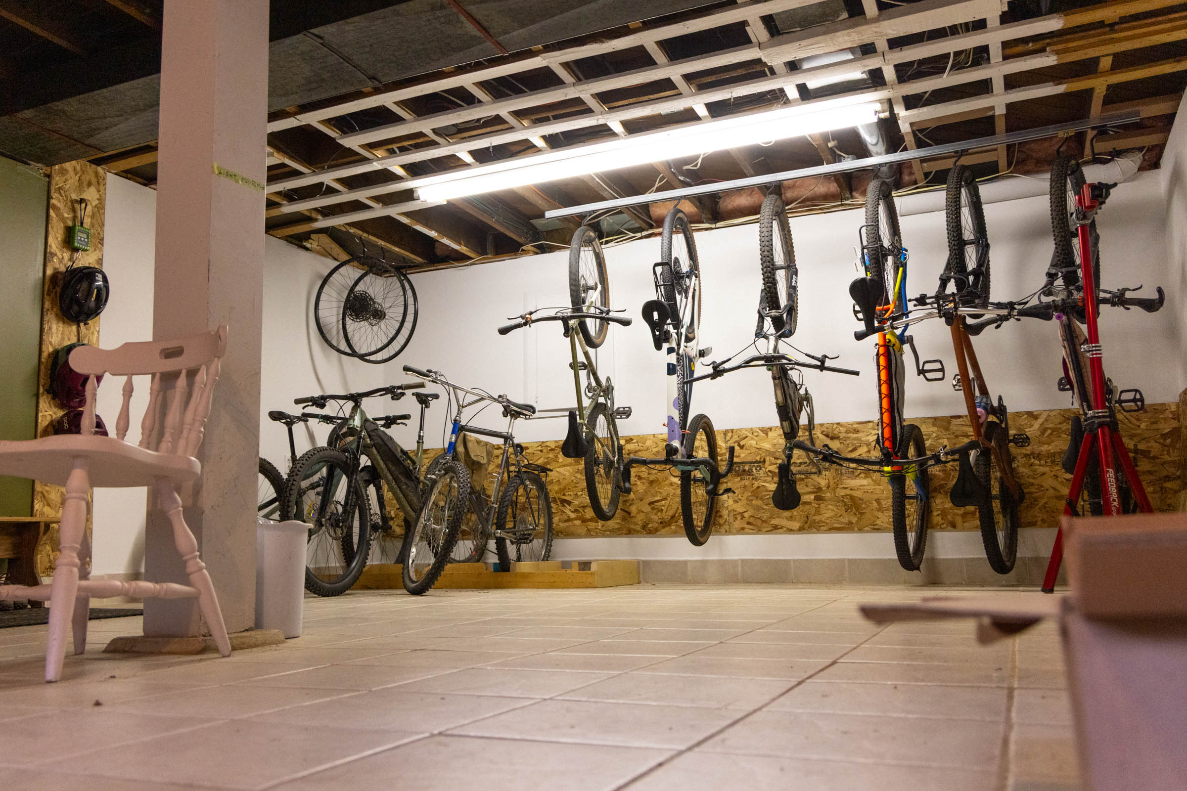 Emily and I bought our first home last winter. She’s been preoccupied with painting walls and making the space feel cozy, and I’ve been slightly obsessed with getting all of our gear and bikes organized. The rental we lived in for over four years was fantastic, with more than enough room for bikes, camping gear, and the absurd amount of bikepacking bags I’ve acquired. However, we didn’t put any effort into organizing it.