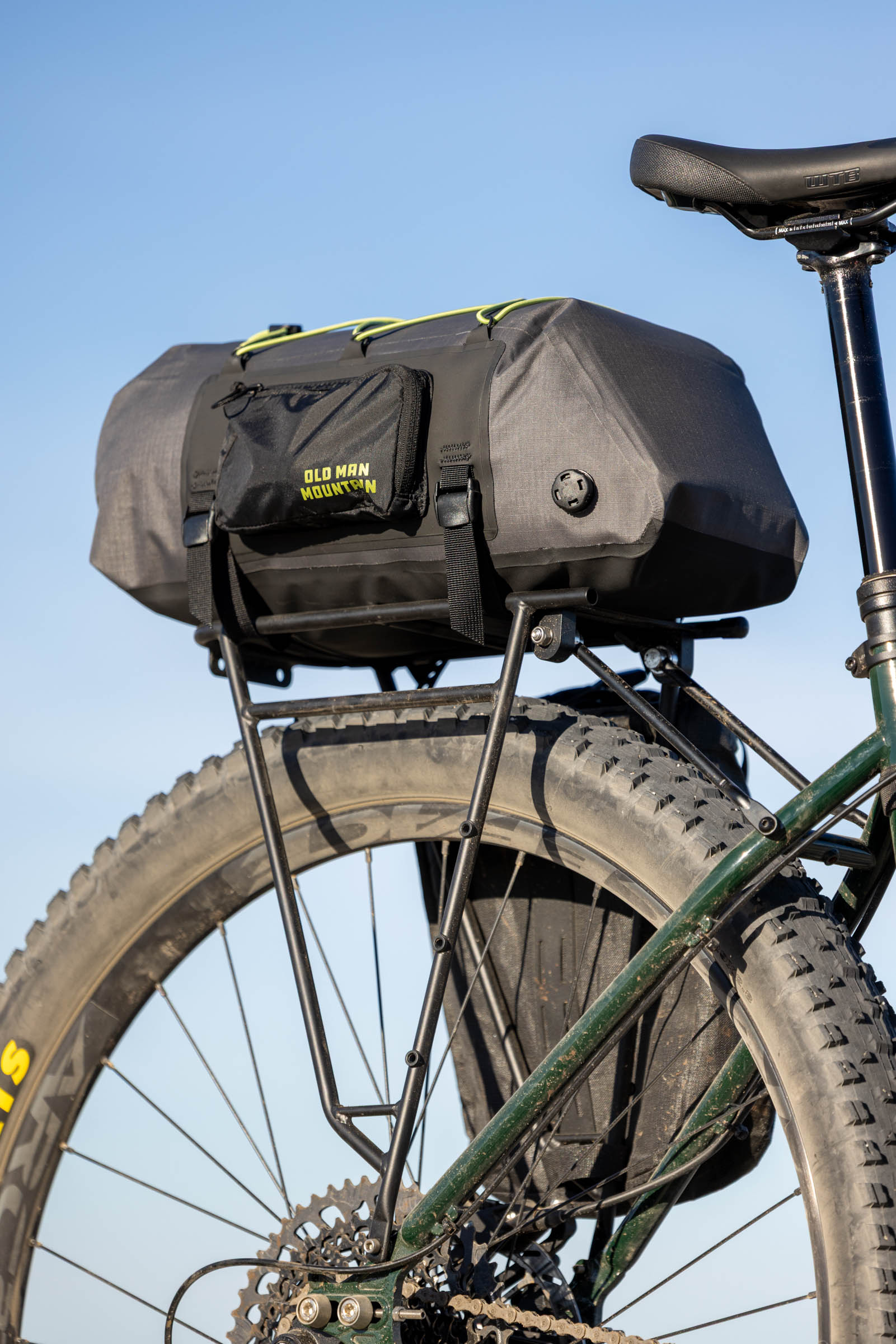 I’m the first to tell folks that a standard dry bag makes the perfect rack-top bag. They are affordable, available in all sizes, and easy to find, with single- or double-ended roll-tops. For anyone on a budget or just starting out, any old dry bag on any old rack can serve as the perfect foundation for a bikepacking setup. I try to practice what I preach, but I’ve had the chance to test some dedicated bags designed for the top platform on a rear rack, and they work great, too.