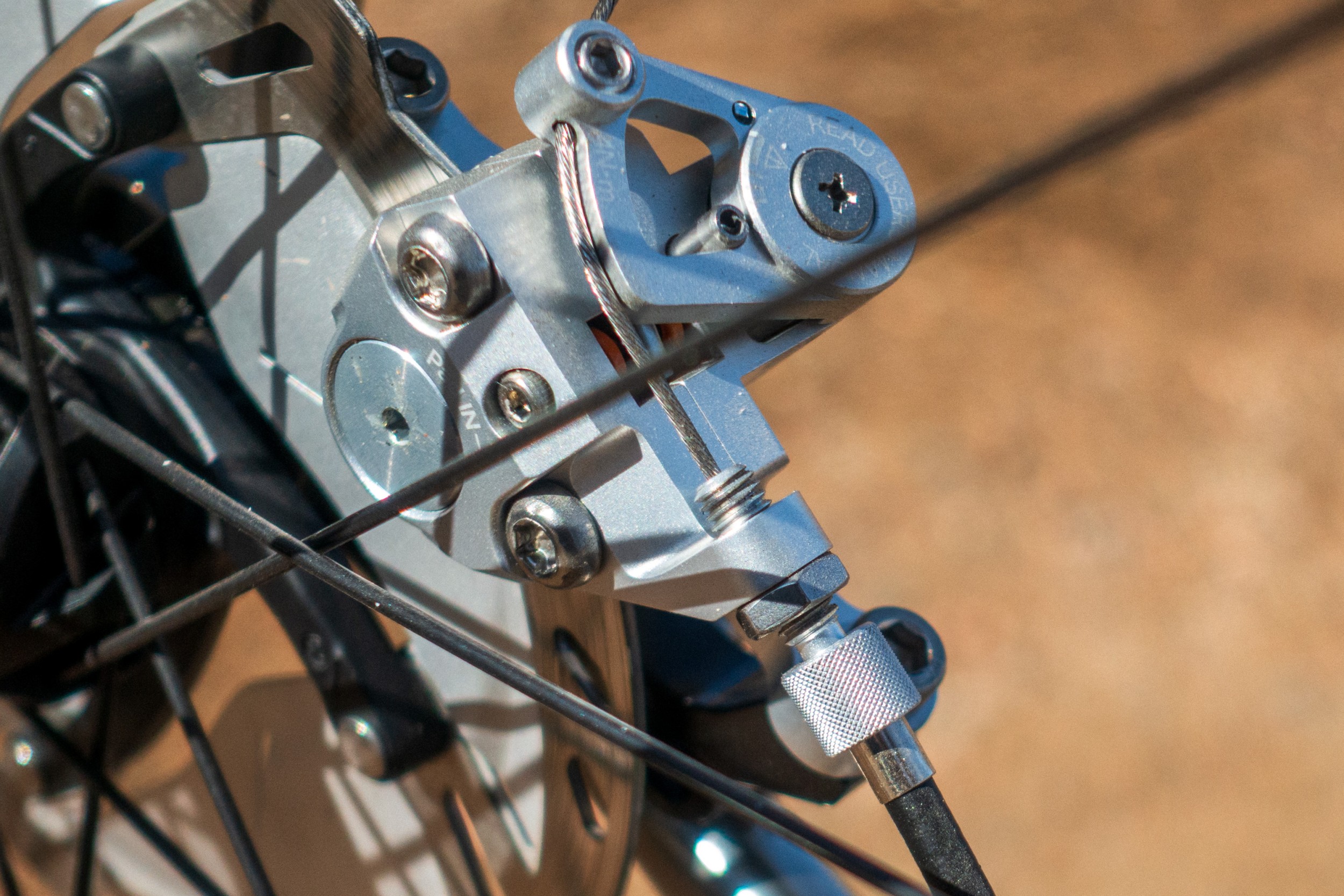 The other eccentricity in setting up the Klampers is the use of housing. I’d heard from others who used them that compressionless housing, usually the best option for brake feel on mechanical calipers, wasn’t recommended. Because the return spring had issues interacting with the compressionless housing, some recommended foregoing it in favor of standard braided housing. Having written off non-compressionless housing, I was hesitant to use standard housing again because of how big a difference it made with the least powerful mechanical options. Nevertheless, to try and get an idea of both use cases, I used standard housing on the front caliper and compressionless on the rear.
