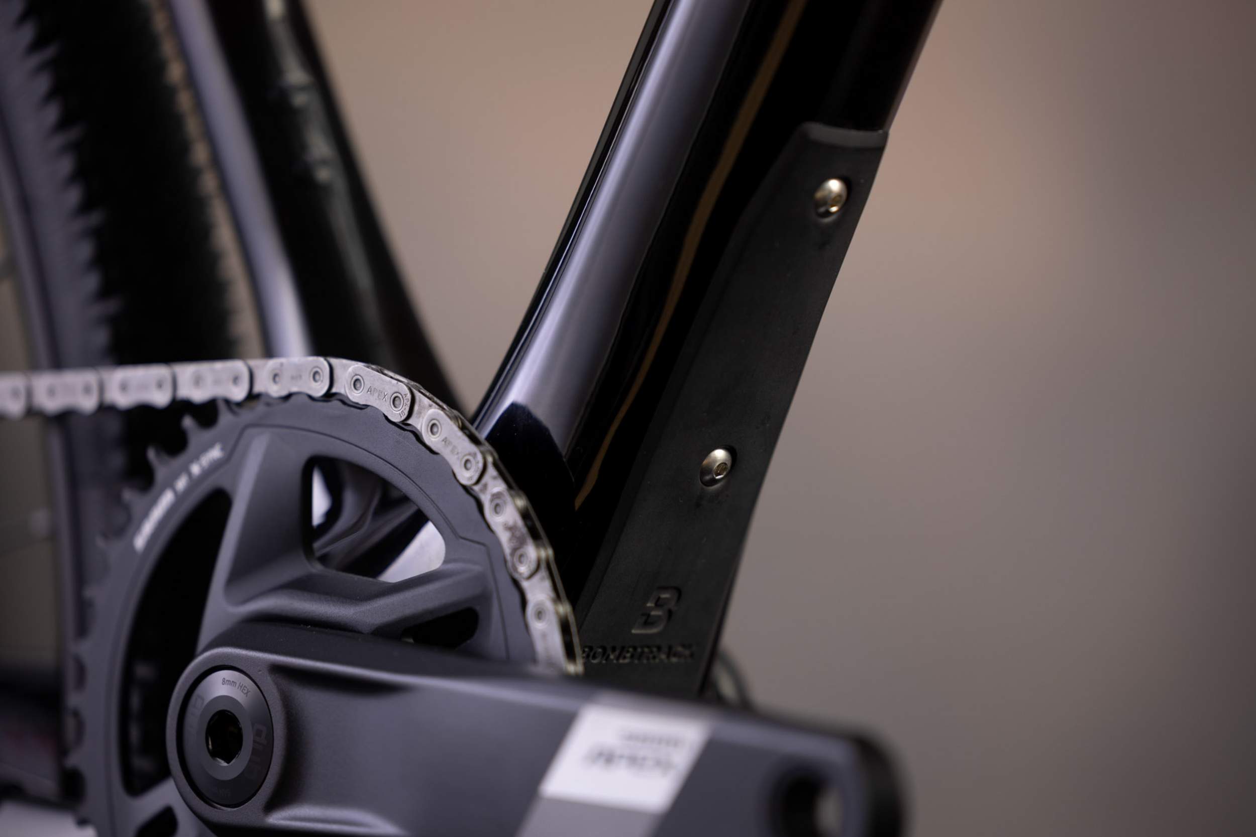 The new Bombtrack Hook EXT C APEX AXS is an updated build from the German bike brand that promises a little bit of everything. With a carbon frame and fork, clearance for a 700 x 57mm tire, mounts for racks and fenders, and a APEX AXS build kit, it isn’t solely for racers and performance-minded cyclists. Featuring a Seido MGV carbon fork with three-pack mounts and lowrider mounts for burlier racks, the Hook EXT C could serve as a solid adventure and bikepacking-oriented carbon gravel bike. Mounts on the underside of the downtube also add some extra space for extra bottles, and the top tube mounts are a welcome addition.