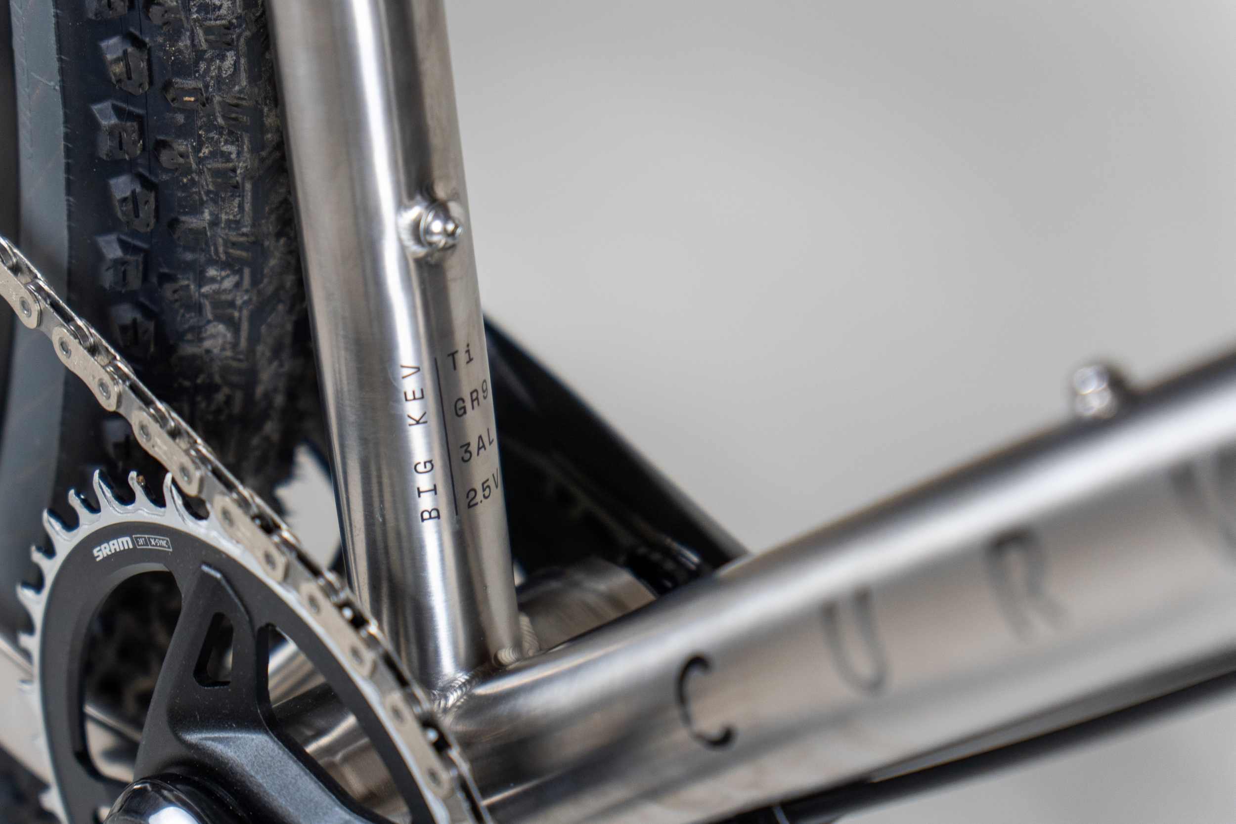 Made from titanium, the V2 offers the same road-style Q-factor as the V1, with design tweaks based on rider feedback and thousands of modeled iterations of their customers’ V1s. Curve says the V2 is built with a larger main triangle than most other 29er options, which allows for more frame bag space, even on smaller sizes. With three bidon mounts, rear rack and fender mounts, and 1x groupset options (boost cranks are not required), Big Kev V2 is a versatile modern gravel bike.