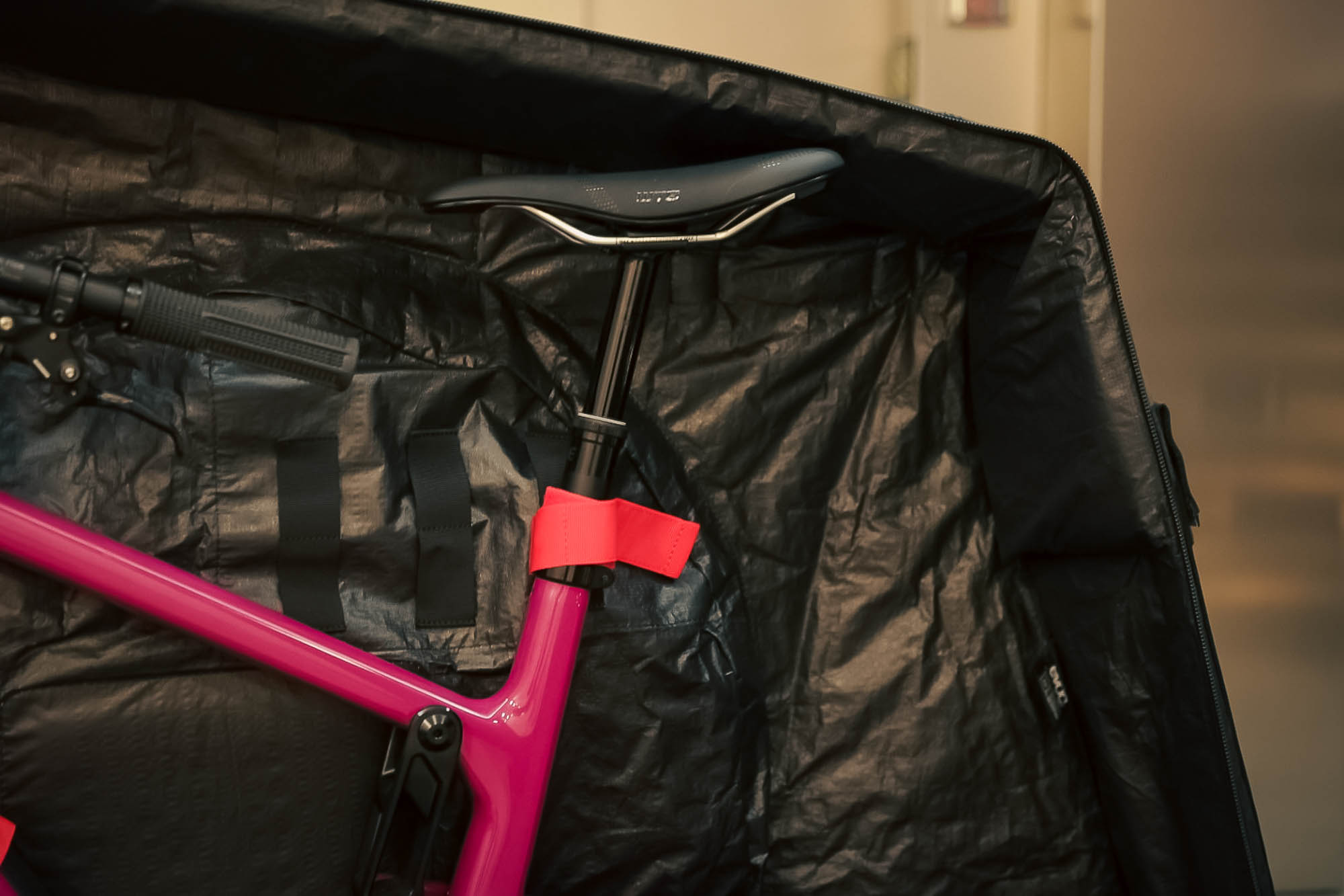 Speaking to their intent behind the Mountain Bike Bag Pro, the EVOC team writes, “We don’t condone headset cable routing, but integrated cockpits and internal cable routing are showing up on everything from XC race bikes to full-on enduro rigs. It can take a lot of extra time on either end of your trip to readjust your bars and cockpit, so we decided to fix it.” The case won awards at its debut at Eurobike in 2025, and it even took home a 2025 Design & Innovation Award.
