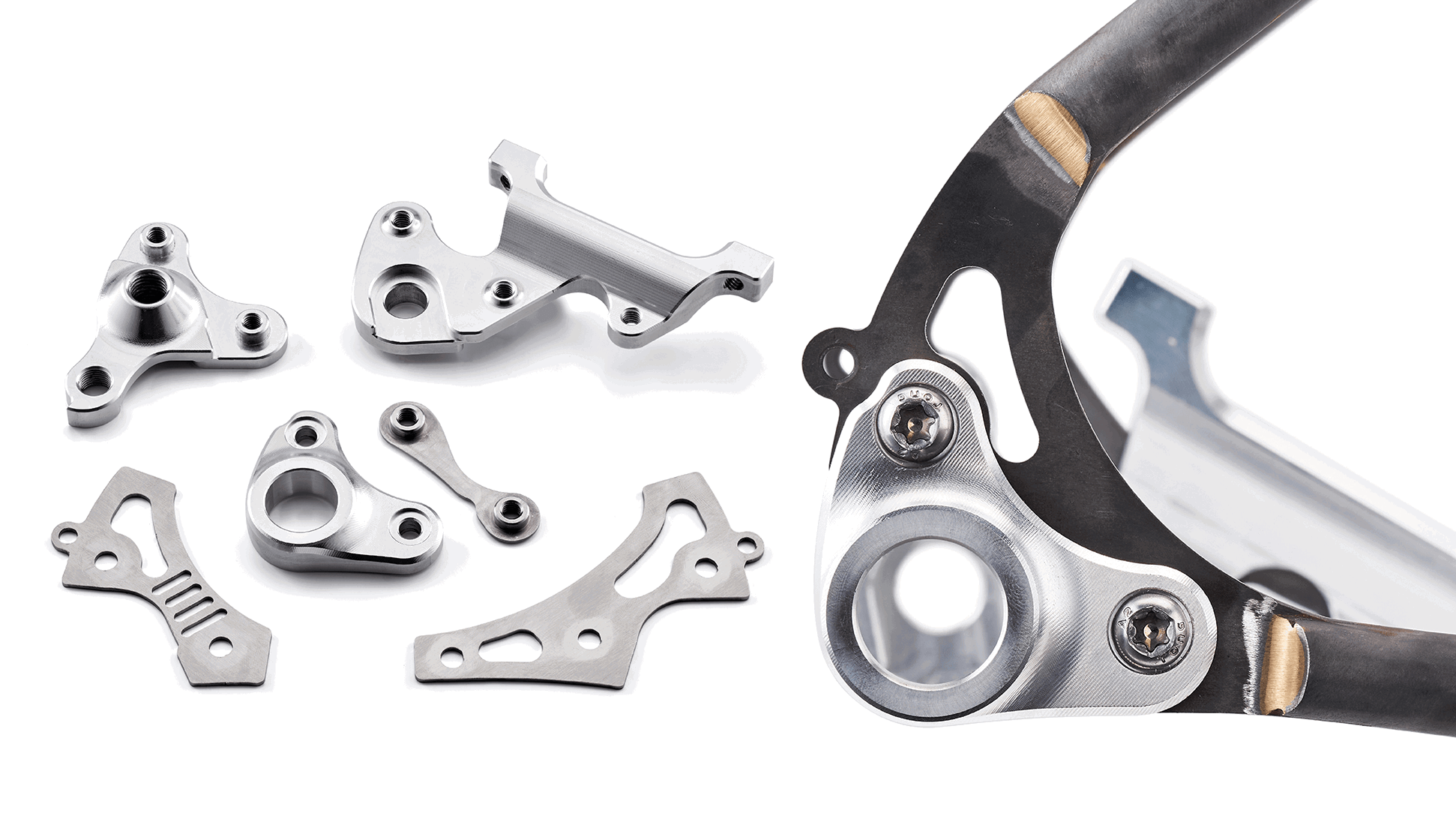 - Bolts, rear axle, CNC dropout inserts, stainless washer plates = 260g