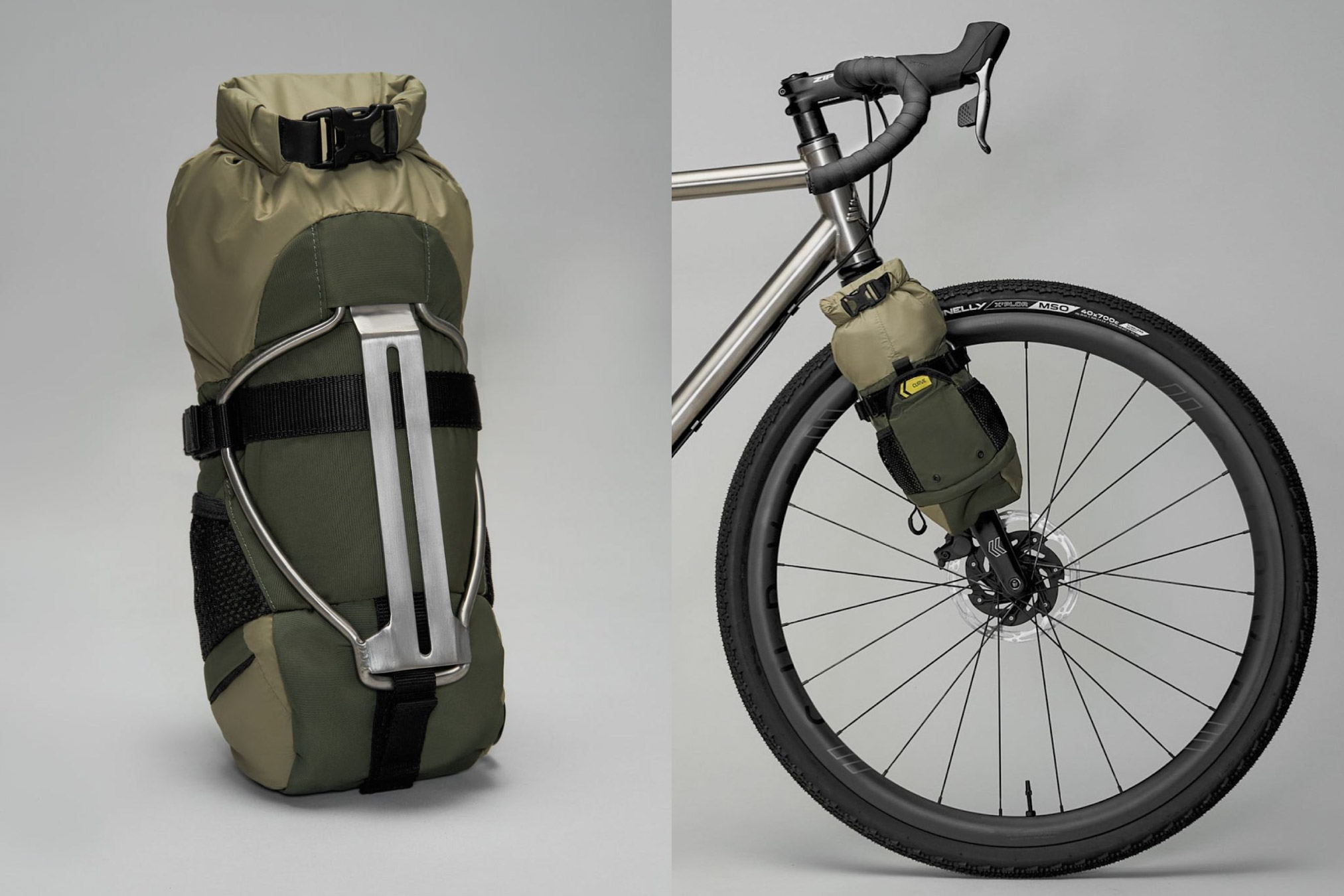 The Curve Rocket Pooch is back in stock and got a few changes based on feedback from riders and real-life testing. According to Curve, they’ve further reinforced the contact points and fabric on the bag for a tighter fit to the titanium Rocket Cage. Not only that, it’s now available in a new color: Sage & Khaki. Find our initial review of the Rocket Pooch here and details below.