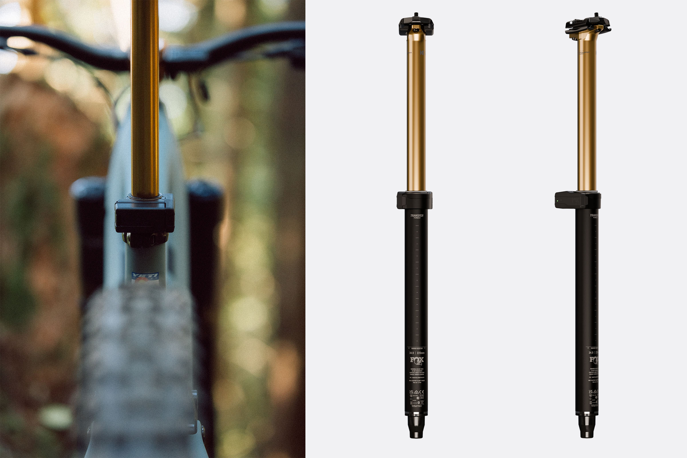 Yesterday, Fox announced the addition of a new 225mm length to its Transfer Neo lineup, expanding the collection to fit even more bikes. The Transfer Neo is now available in 100mm, 125mm, 150mm, 175mm, 200mm, and 225mm drop options in 30.9mm and 31.6mm, with 125mm, 150mm, 175mm, 200mm, and 225mm options in 34.9mm. According to Fox, the Transfer Neo is the fastest-actuating wireless dropper on the market—just 26 milliseconds from lever press to post movement, to be exact.