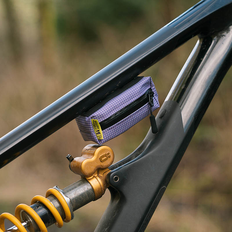 Speaking to the inspiration behind the On-Tube Storage line, Bailey said, “The original idea came from a friend who needed a bag for carrying his glasses up the hill without them getting foggy. Once people started seeing it, they wanted a way to carry their own stuff, so I got to making, and ended up with the more refined design we have today.”