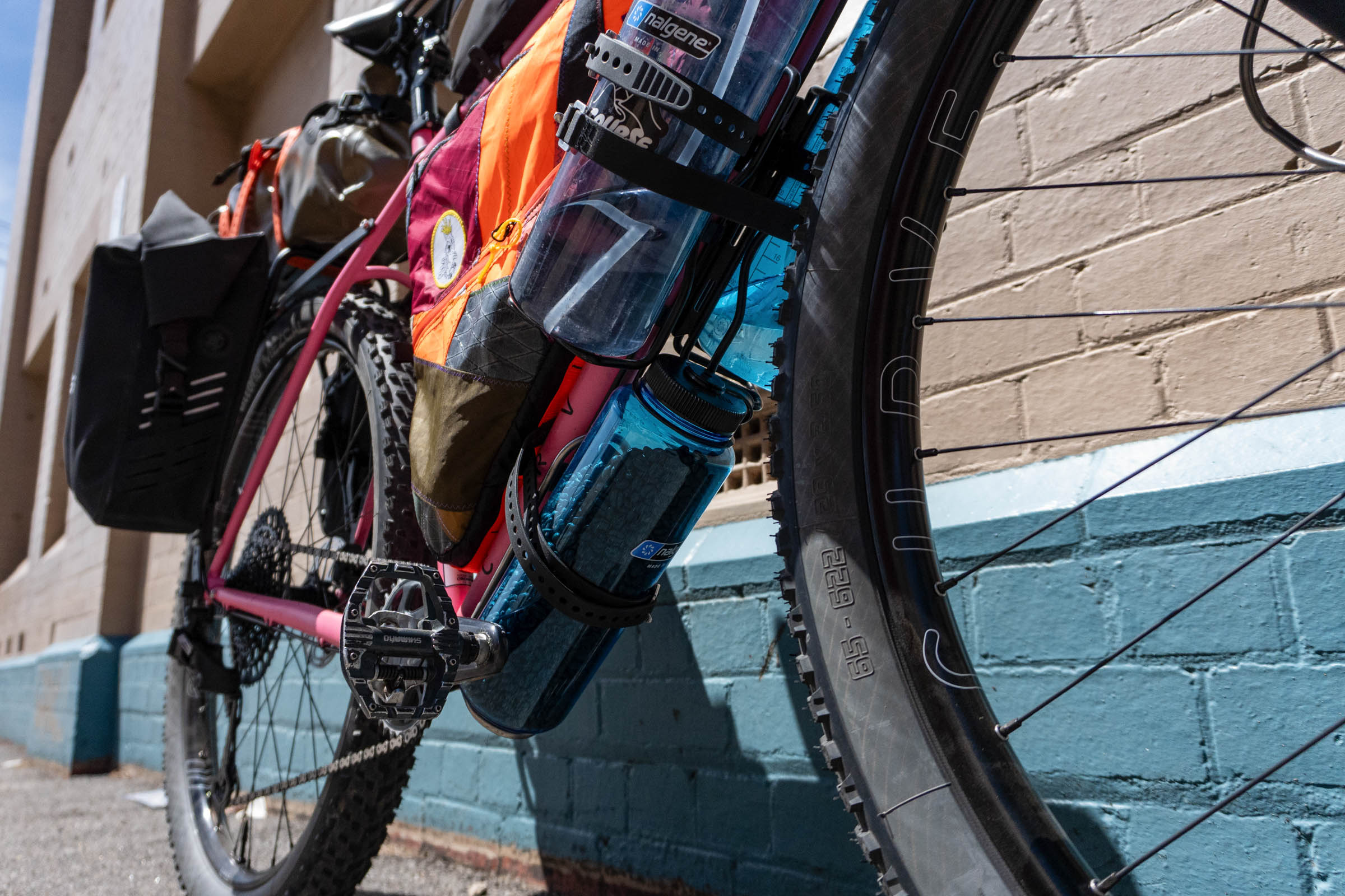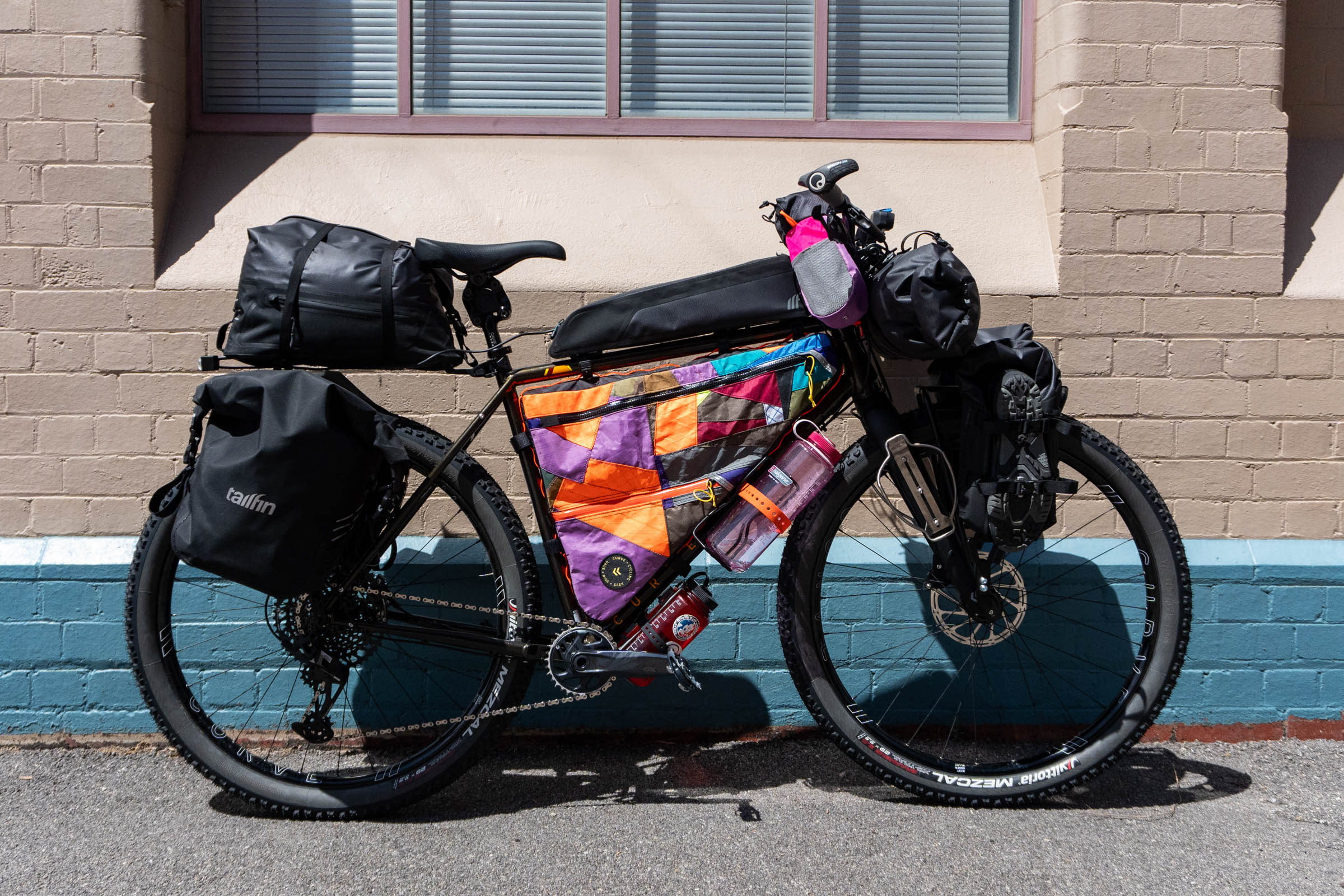 - Front Bags: Tailfin Bar Roll, Front Panniers 10L, Long Top Tube Bag