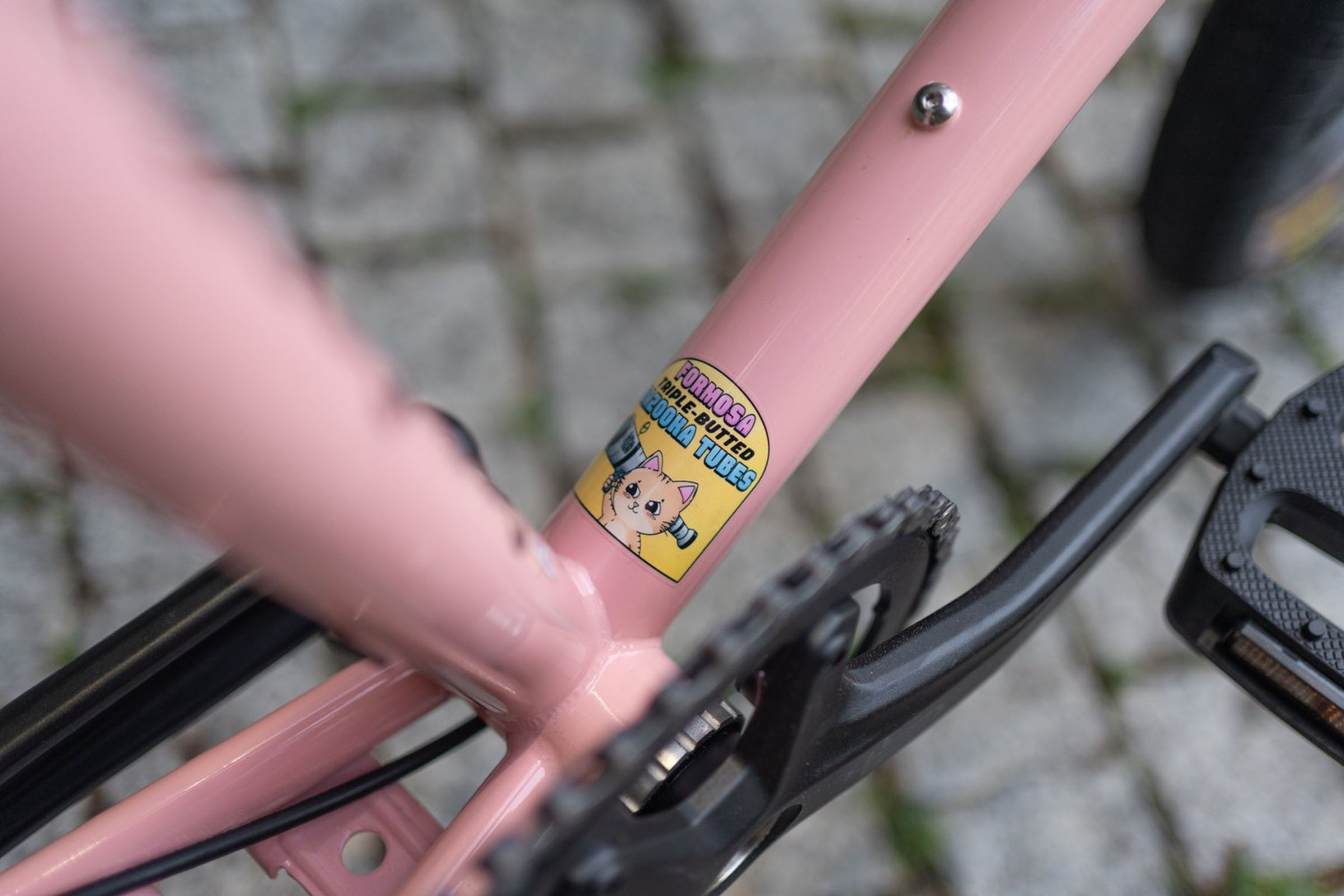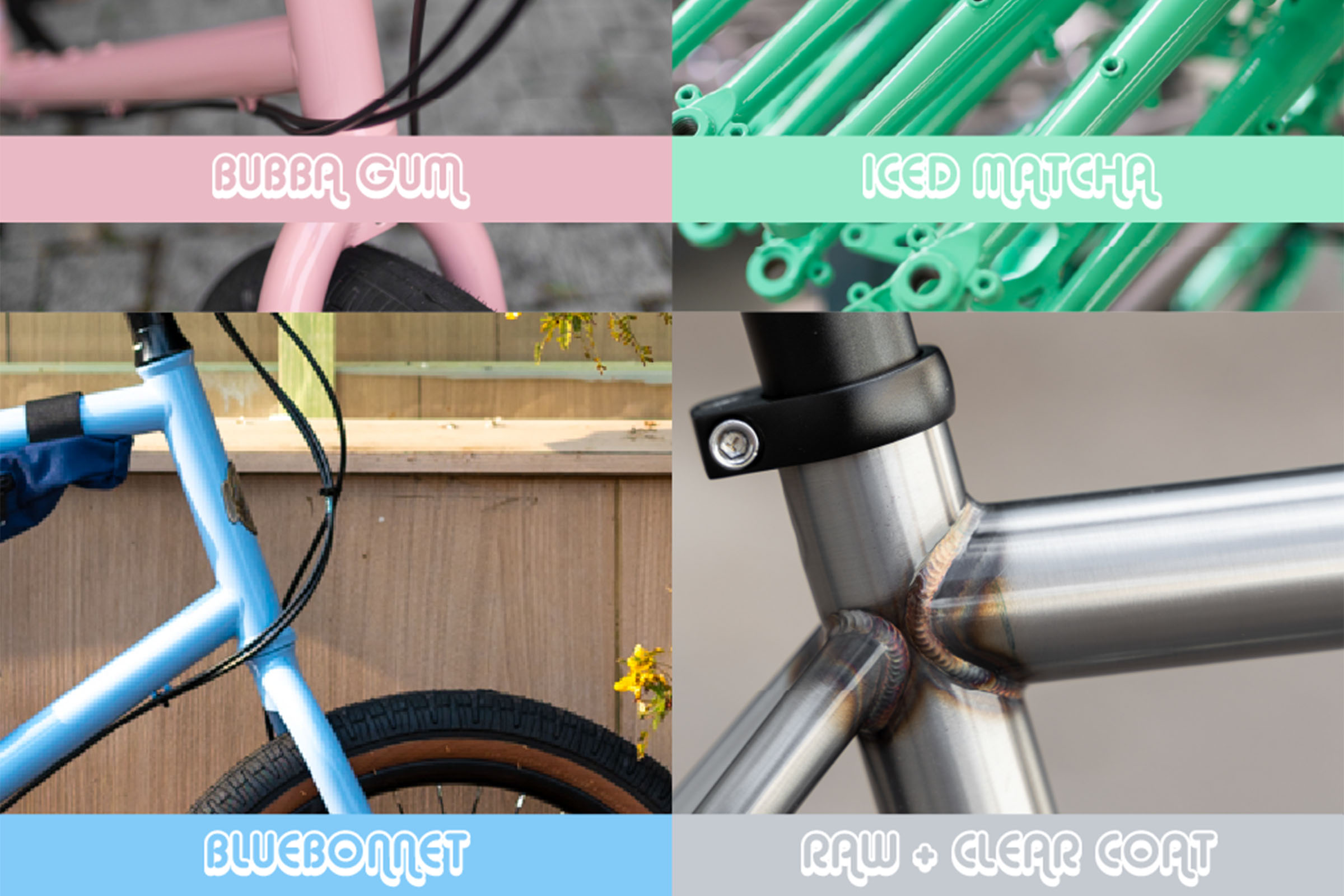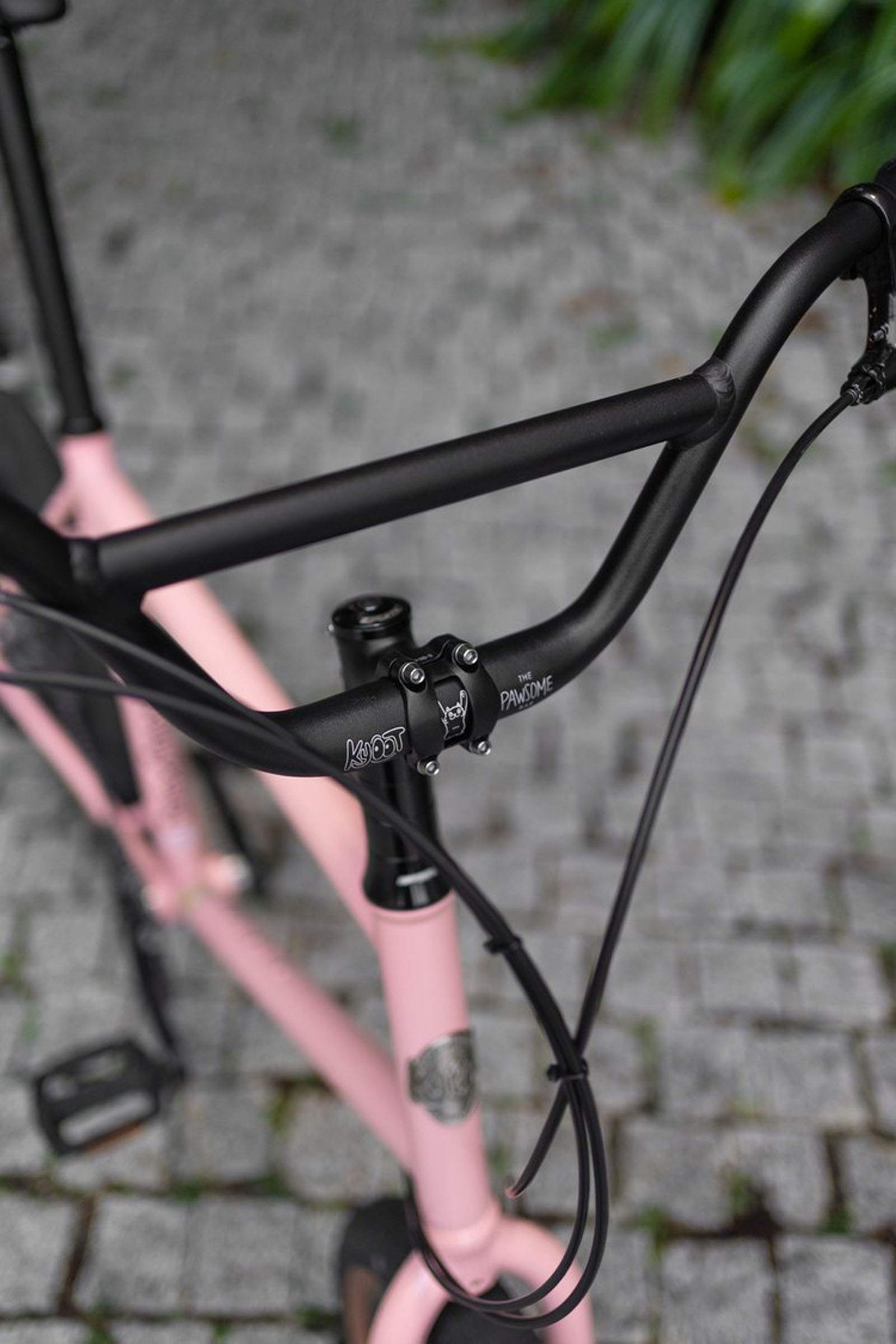 Kyoot is currently taking pre-orders for complete builds, which come specced with PROMAX brakes, rotors, and levers, microSHIFT 10-speed 1x cranks, derailleur, and cassette, an FSA headset, Shimano bottom bracket, and KMC chain. The build includes Kyoot’s The Pawsome Bar—a fully custom 6061-T6 heat-treated aluminum handlebar with a 7.5” rise, 780mm width, 6° upsweep, and 20° backsweep. It’s available in four finishes: Raw with Clear Coat, Bubba Gum (pink), Iced Matcha (green), or Bluebonnet (blue).
