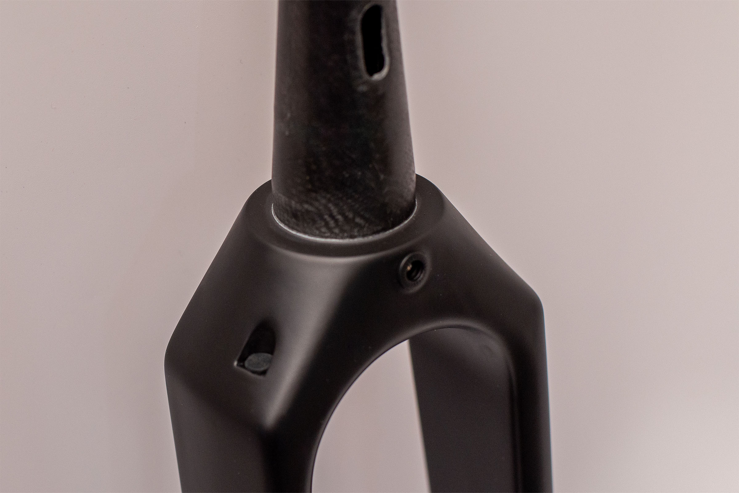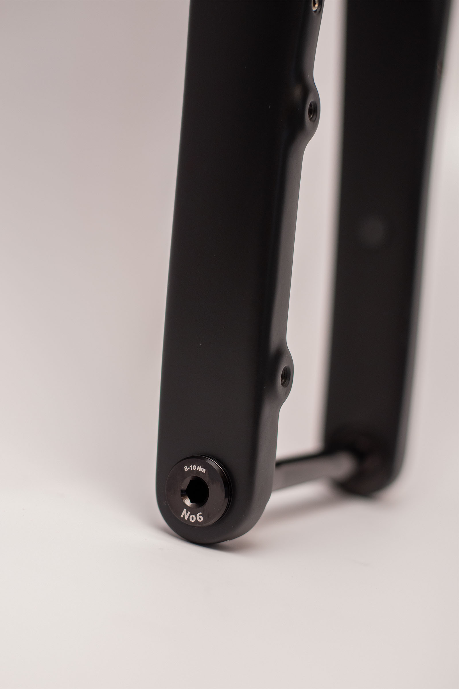The new No. 6 Composites Gravel Correct Fork features a 430mm axle-to-crown, designed to complement frames intended for 40mm gravel suspension forks. It has an impressive 29 x 2.5″ tire clearance, which is some of the biggest we’ve seen from a gravel fork. It also sports three-pack mounts for cargo cages, internal dynamo routing, internal brake routing, and it’s ISOCorrect rated, which is a new testing system that increases ISO 4210 fork testing standards by 25 percent.