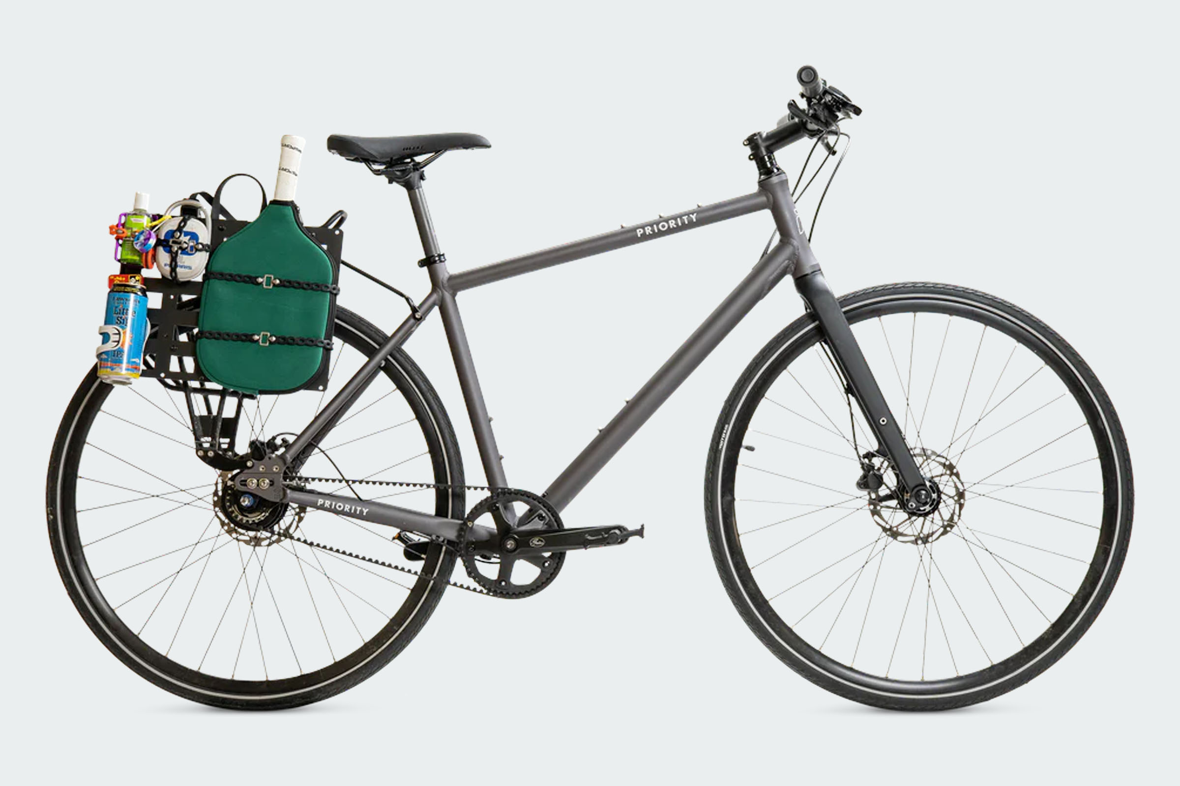Not quite a rack, but not really a pannier, the new Priority Cycles MOLLE Pannier Rack attaches to your rack like a pannier, but gives you a MOLLE webbing grid to add pouches, gear, and anything else you can think to strap to it. At first glance, it might resemble the Relentless Mule Rack Neil reviewed this winter, but the only real similarity is the MOLLE-style attachment pattern. The Mule Rack is a dedicated rear rack, whereas the MOLLE Pannier Rack requires a rack to mount to.