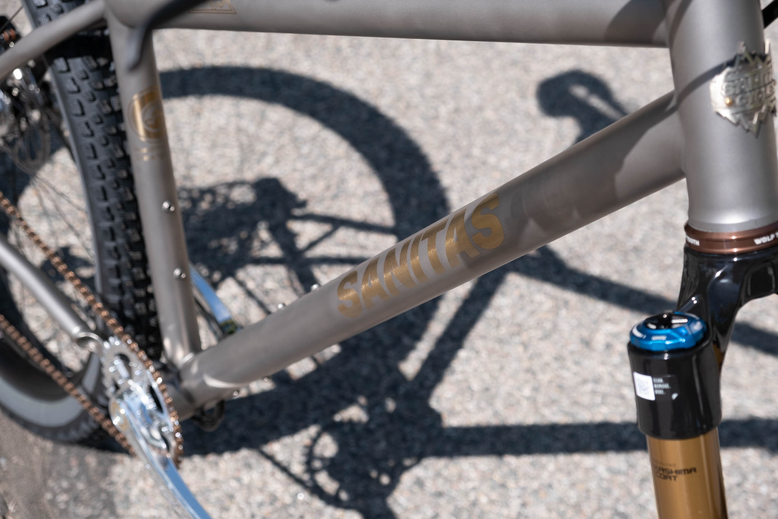 I had been wanting a custom 29″ hardtail for years when the ultimate match made in heaven happened: Sanitas Cycles moved their shop into the garage next to our electrical shop! And as it turned out, they needed conduits and wires run to their lathes/mills/welders, etc., and we worked out a deal for a frame. They say diamonds are forever, but this titanium will be my forever bike.
