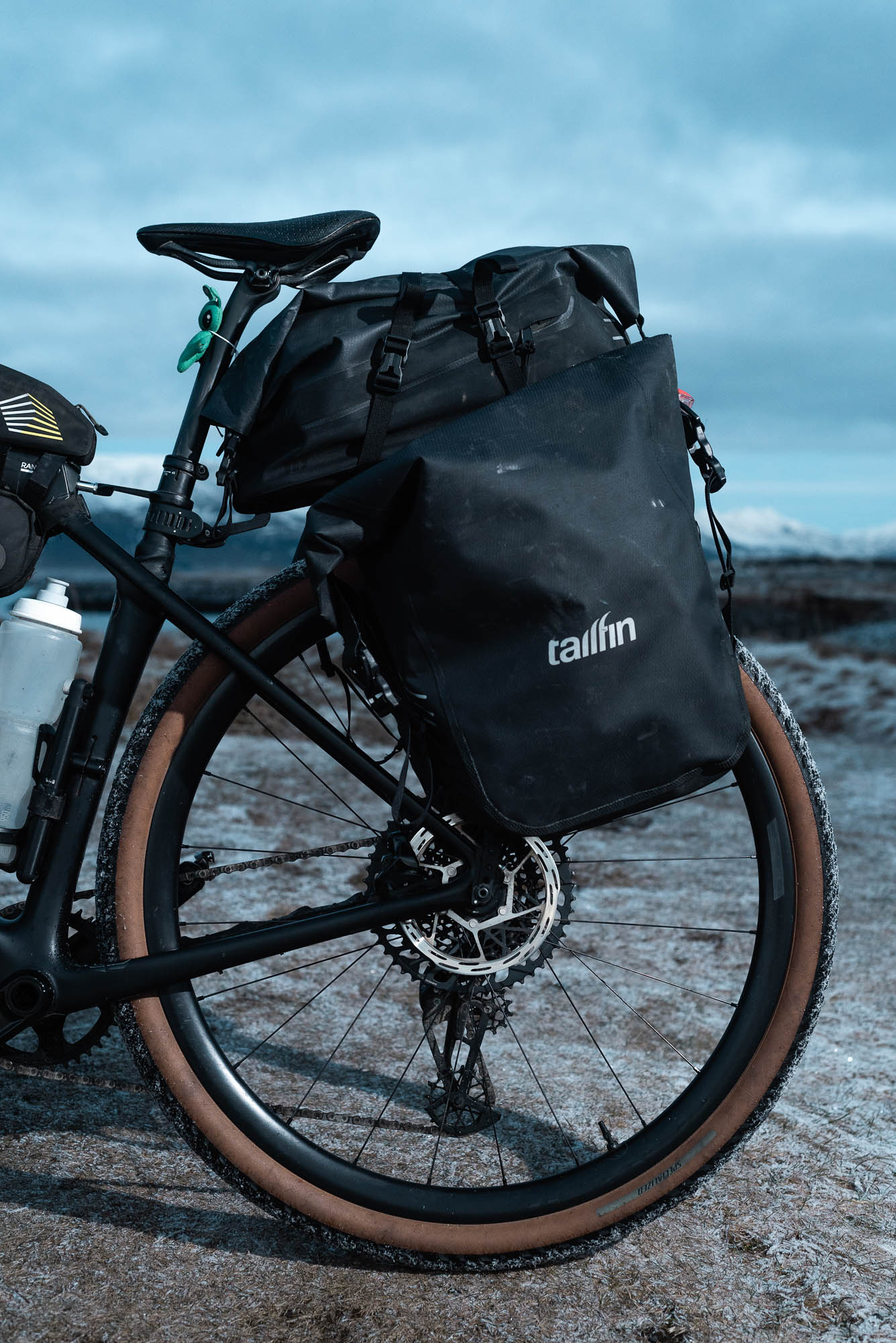 - Rear bags: Tailfin Aeropack Carbon with two 22L panniers