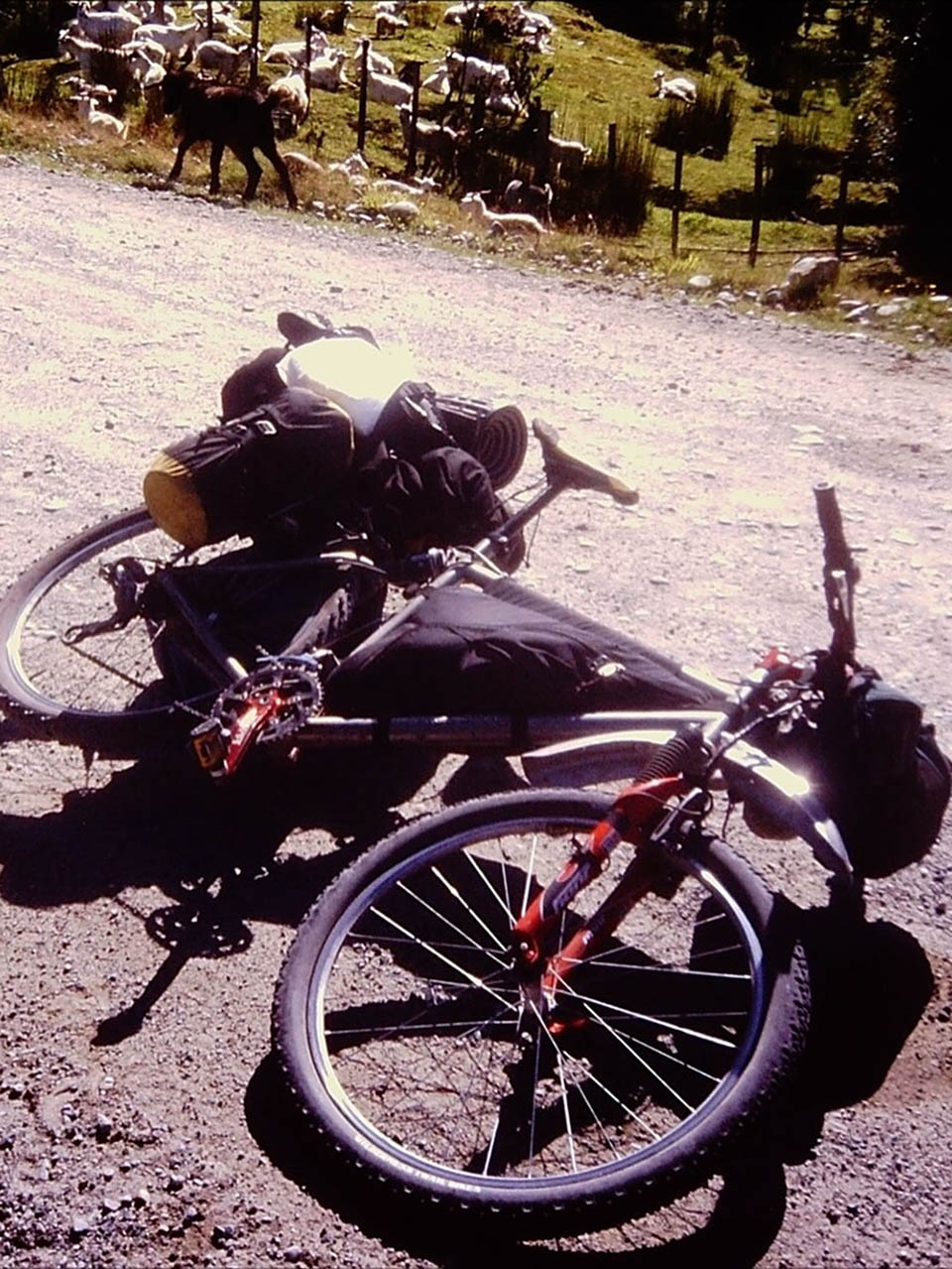 Many bag makers have emerged in the years that bikepacking has boomed, but few can claim the same history and depth of experience as Eric Parsons of Revelate Designs in Alaska. The brand has been instrumental in shaping the era of modern bikepacking, and it’s come a long way from its origins as a one-man shop. We just stumbled upon this pair of charming shots from a bikepacking trip Eric took along the 1,000-kilometer Carretera Austral route in Chile some 25 years ago, well before Revelate Designs officially came into being. Eric’s 26er hardtail features a 3×8 drivetrain and the first frame bag he ever made—a true blast from the past that doesn’t look all that different from what’s available today.