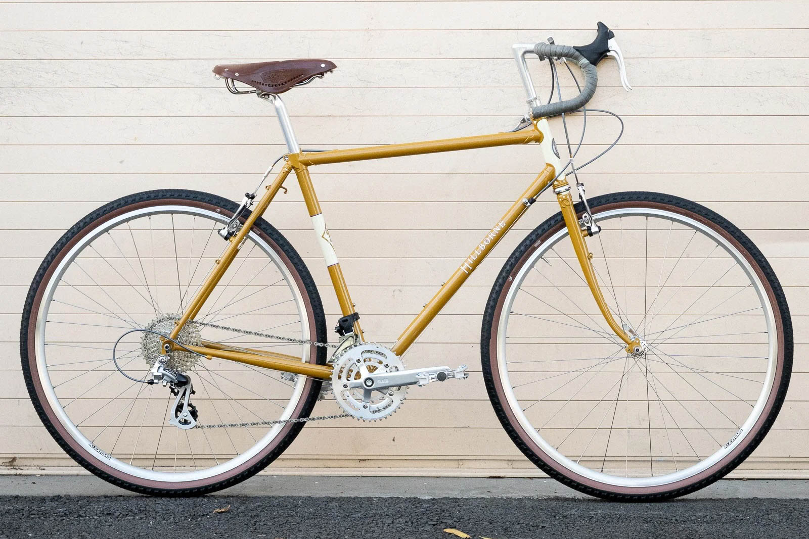 From Rivendell: “The Sam Hillborne is a classically styled frame with sweated-over graphics. The frame joints are lugged, the fork has a crown, and they’re all our own designed investment castings, starting from rocks, which are made into metal, and shaped with precision and beauty by a process developed in China ten thousand years ago.” I actually owned one of these a few years back and can attest to their beautifully detailed design and construction. Sam Hillborne framesets are made in Taiwan and cost $1,750 USD. This batch is available in Sage and Mustard colors (pictured here) in sizes 48, 51, 54, 57, and 60. Delivery is expected in December.