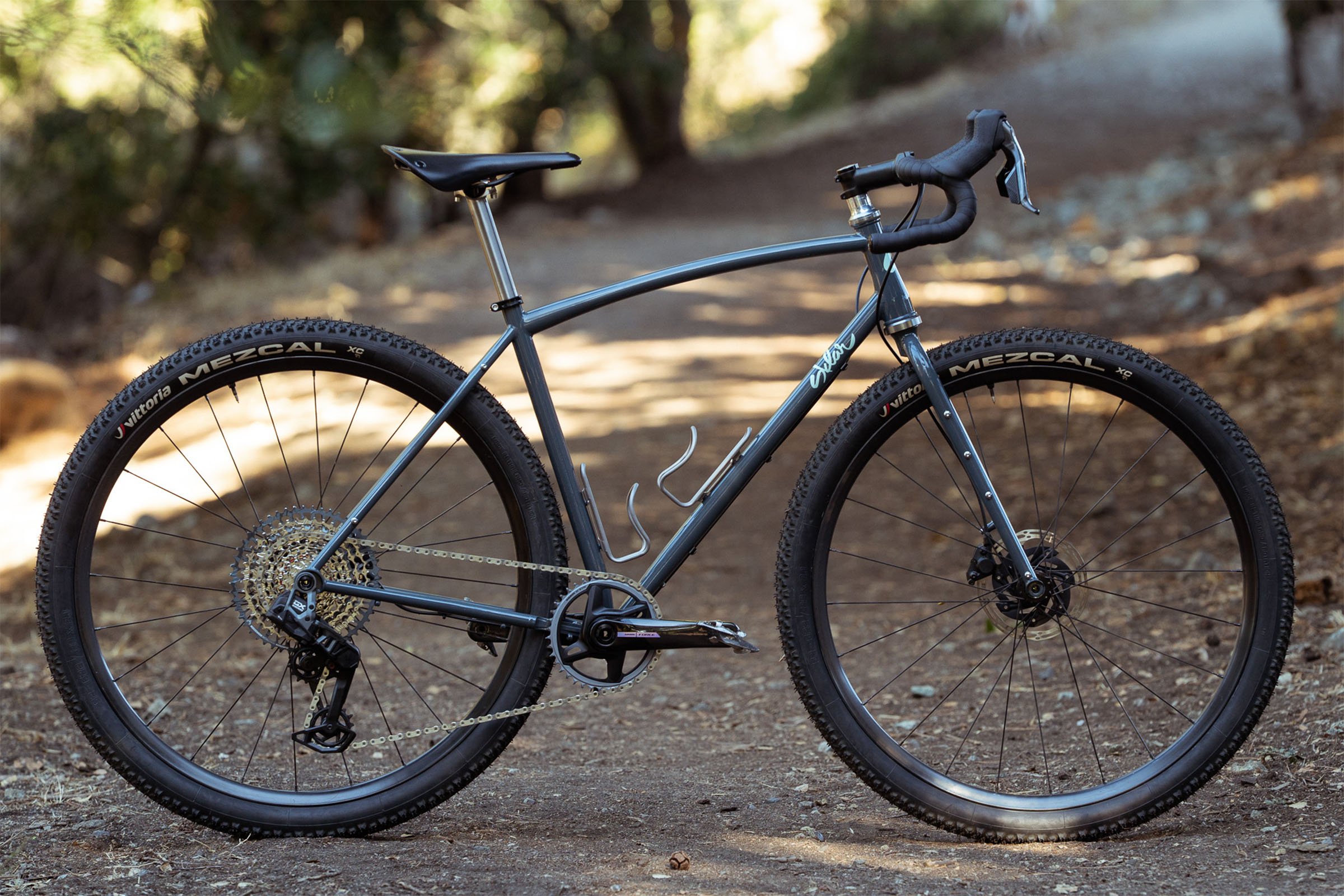 It has a new cast Chromoly chainstay yoke instead of a dimpled tube, and it now uses flat-mount brakes on the front and back to make builds come together even easier. The frame maintains rack and fender mounts, two standard bottle cage mounts, downtube mounts, and the fork has been updated with three-pack mounts for even more luggage-carrying capability. The included unicrown fork features smaller diameter tubing that Adam says offers additional flex, comfort, and control. Other specs include a threaded bottom bracket, external cable routing, a 27.2mm seatpost, and 12mm thru-axles. There’s still no internal dropper post routing, but an externally routed dropper could get around that.