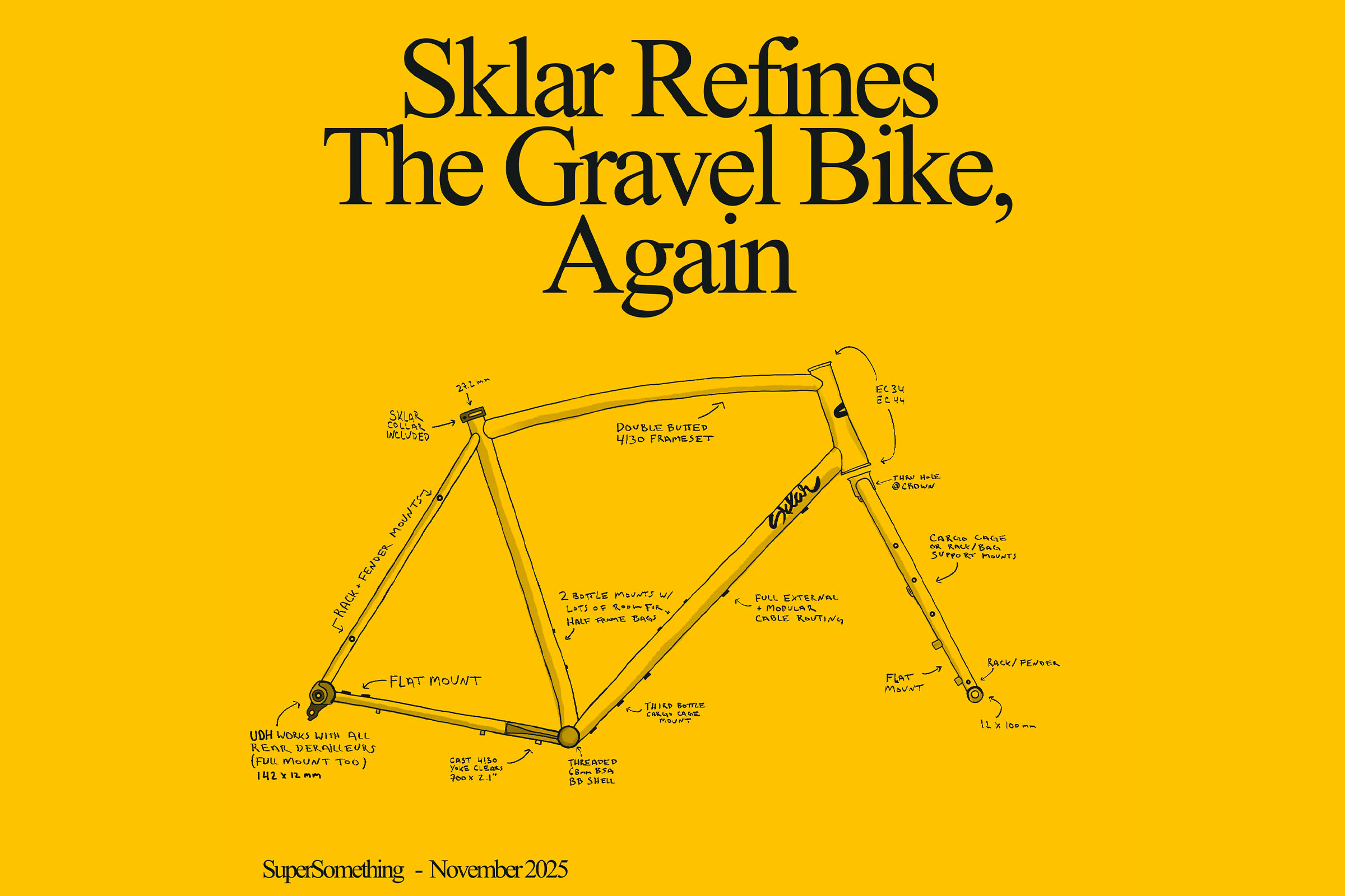 The Sklar SuperSomething V2 features a lighter tubeset, fresh specs, more mounting points, and many of the same features from the original, including 2.1″ tire clearance, practical complete build options, and the option for a color-matched carbon fork. Dig into all the details here…