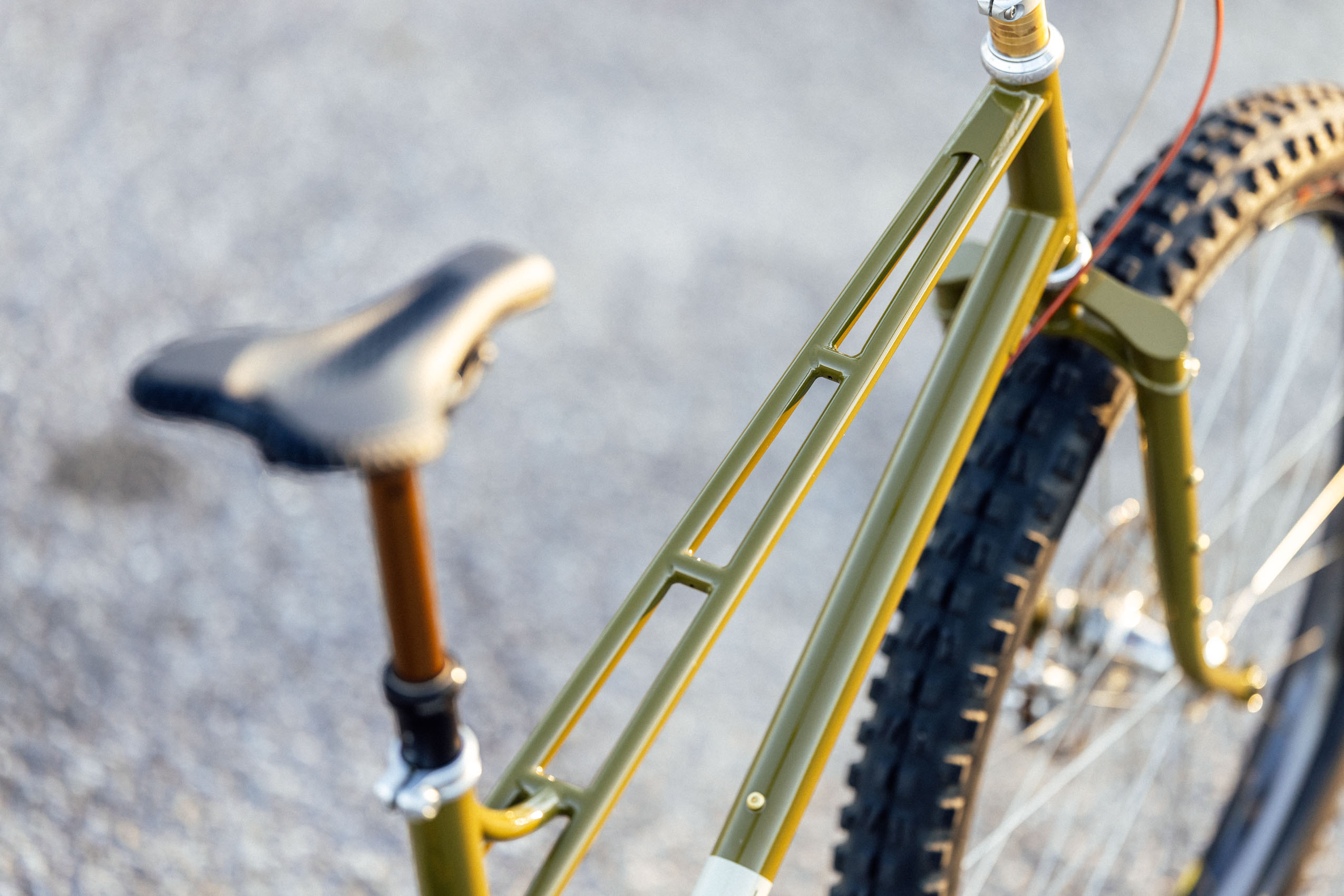The new Stooge MK8 is nearly identical to the MK7 Logan reviewed and loved (pictured below), save for three new colors and a lighter triple-butted biplane fork. It’s still designed around a steel frame and rigid fork, three sizes, big 29″ or 27.5″ tires, and enough cargo capability to make a fine bikepacking rig. It maintains the new XL size, the additional mounts under the downtube, and room for a long dropper post without sacrificing frame bag space.
