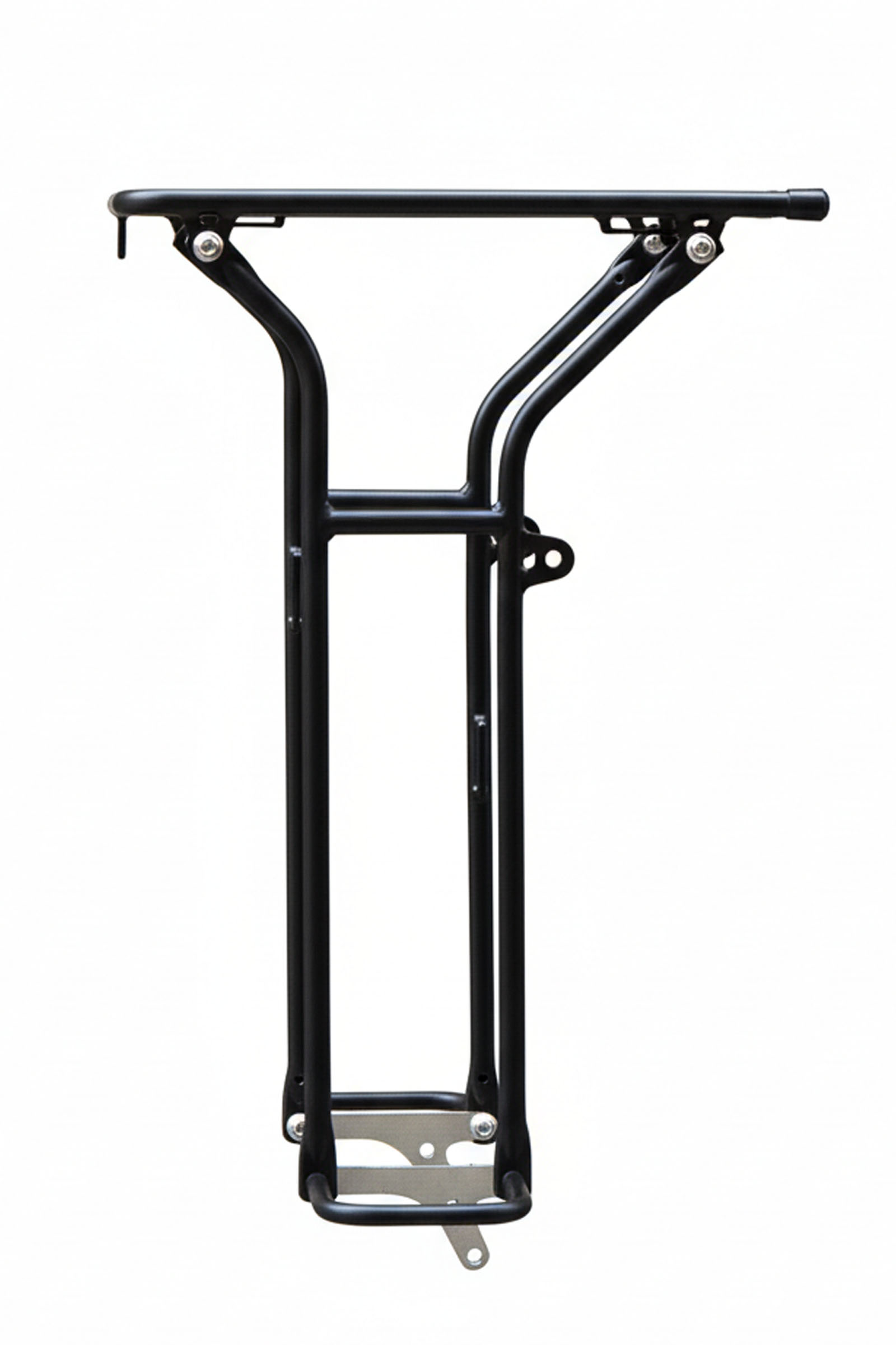 The Veloci Cage Wednesday Front Rack is made in Taiwan from 4130 Chromoly steel. There are strap keepers welded onto the legs to make packing easier, and the 265 x 160mm top platform is there for bags, gear, baskets, and whatever else you need to haul. It appears to be a three-piece design, so when disassembled, it should pack quite flat for travel.