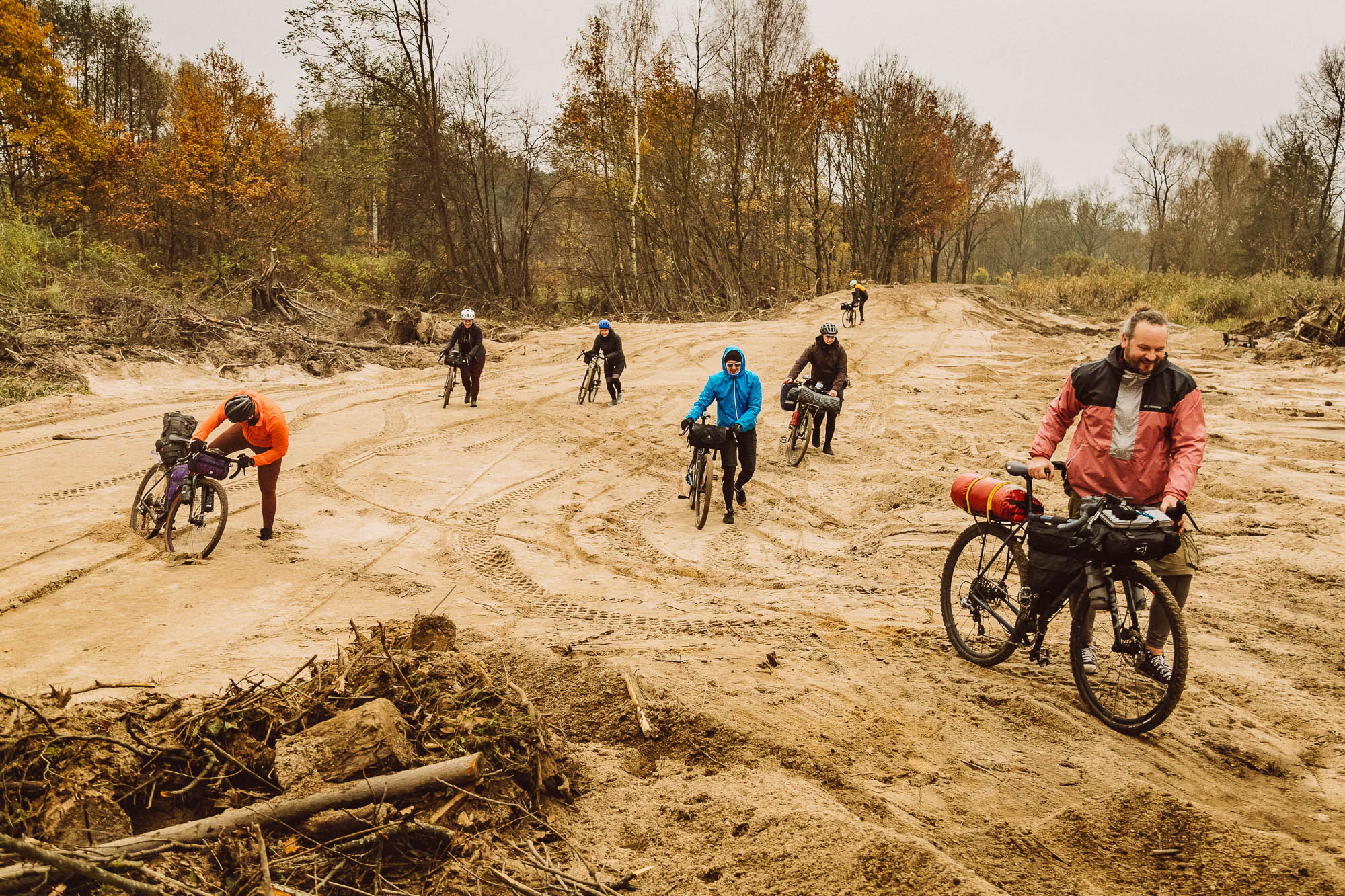 Our buddy Lukasz and his partner Pola are about to kick off an epic adventure: riding their bikes across both Americas! But just three days before the grand start, he still found time to swing by Zielona Góra and spend one last wild night in Poland with us by the banks of the Bóbr River. The cheerful Poznań crew rolled in too, and together we had the perfect send-off: autumn vibes, camp coffee, a bunch of bridges, endless jokes, sandy stretches, and of course those classic hike-a-bike sections that somehow always bring the gang closer together.