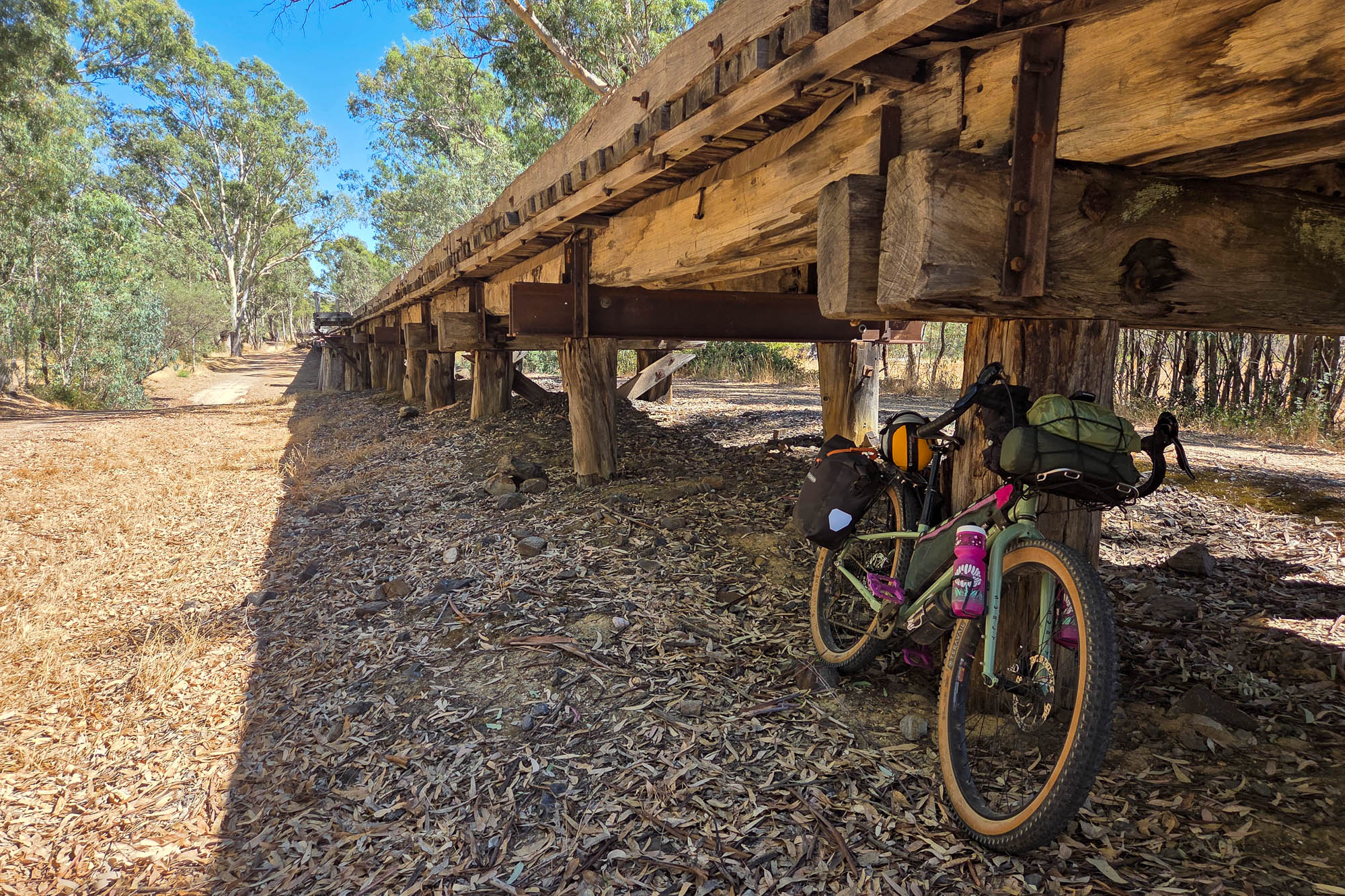 Although a very hot day, followed by a very rainy one, loomed, we decided to risk it and take a short blast on the Castlemaine-Maldon Trail, camping in one of our favourite historic gold-mining towns. We were rewarded with rare bird sightings, an empty campground, and a mob of 20 kangaroos feasting 15 metres from our tent… as well as missing the rain!