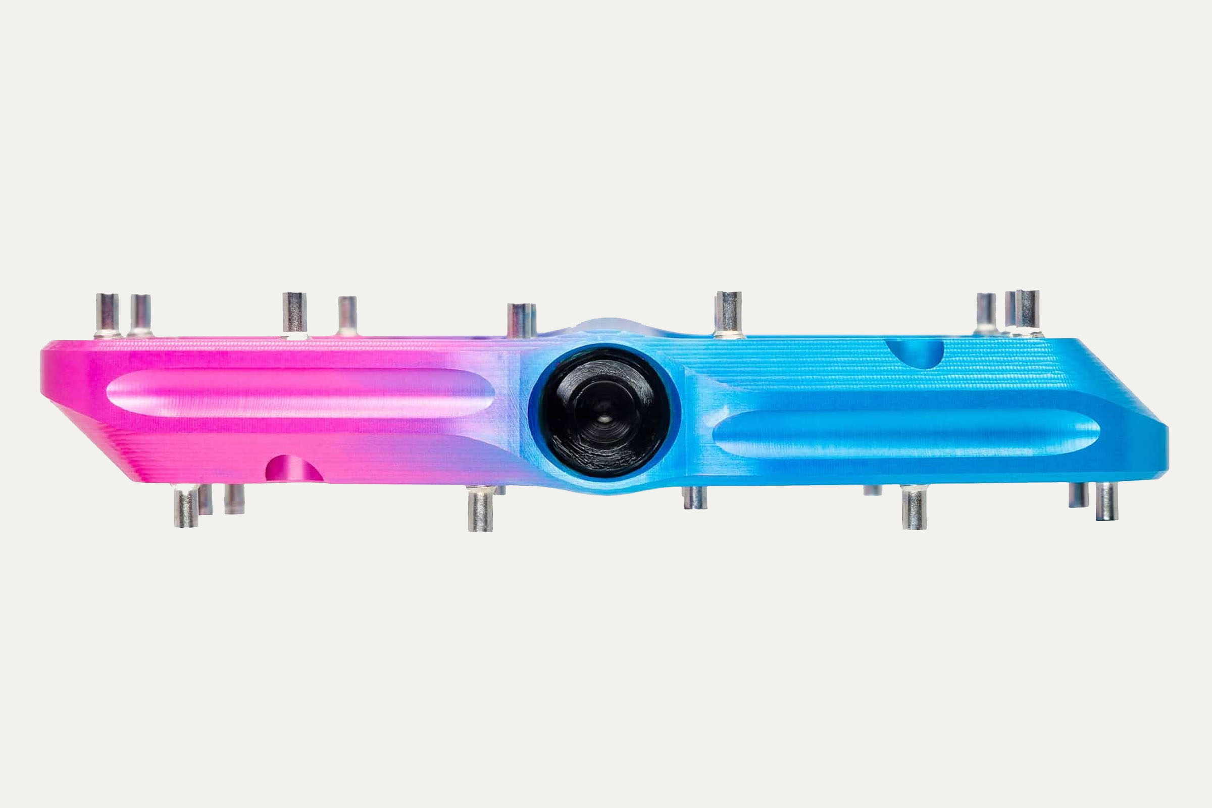 Wolf Tooth Components in Minnesota just released their first limited edition Waveform Pedals, produced in collaboration with Ashley Anodized It. They come in a vibrant Cotton Candy fade finish. Read on for details. With 50 pairs available, these won’t last long…