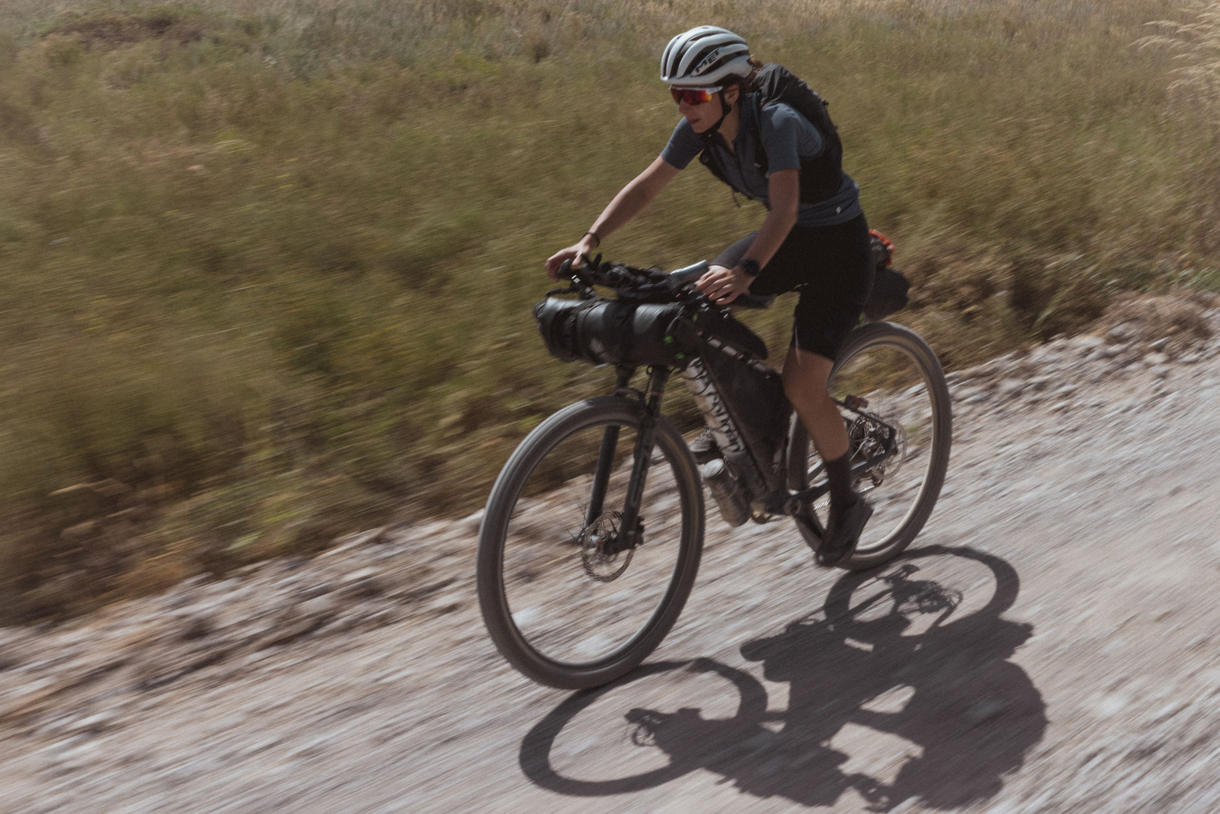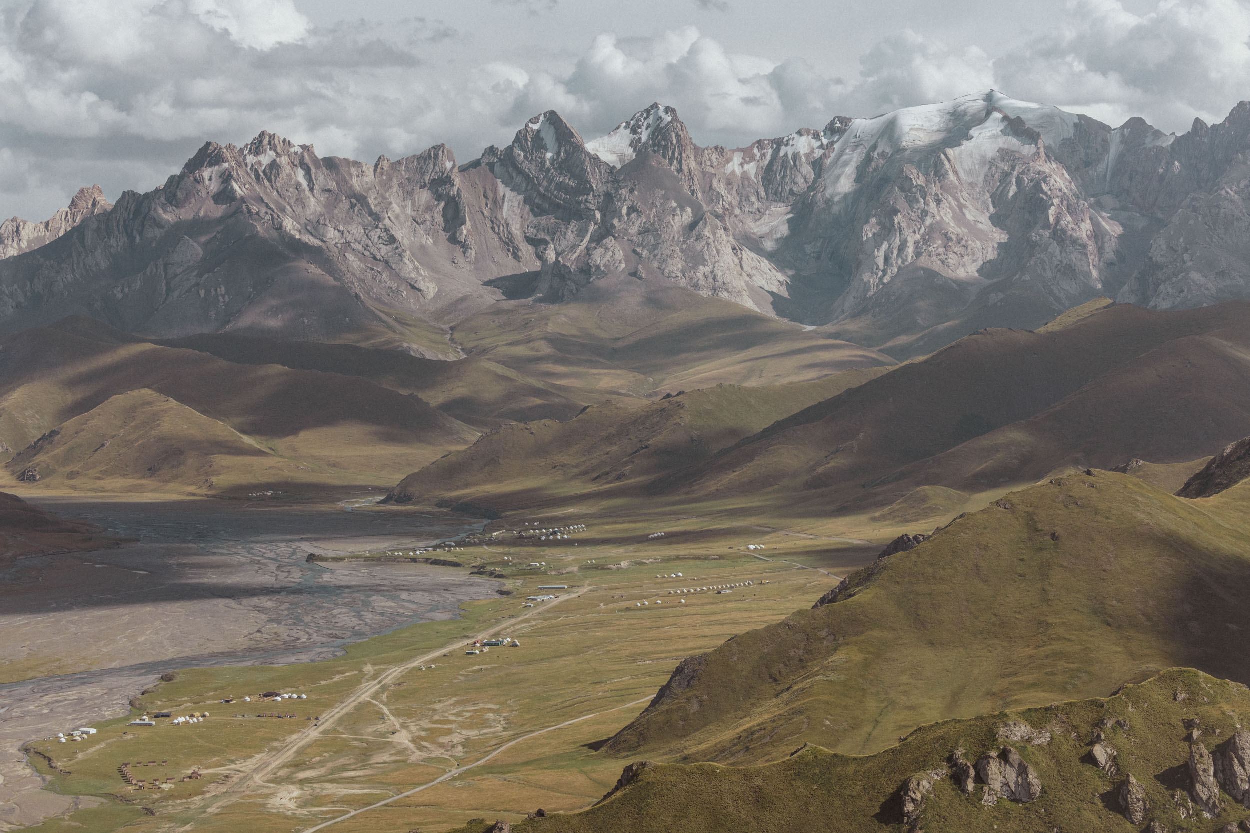 Entering one of the hottest and driest sections of the route, the Kazarman loop, riders endured miles on miles of dusty washboard. This part was testing for much of the midpack with mechanicals, sickness, extreme heat, and saddle sores being the biggest adversities. Once in Baetov, riders took a moment to collect themselves, eat a warm meal, wash bibs, and remedy punctured tires before before leaving the desert for the alpine and ascending MELS Pass to higher ground. This is a beautiful transition zone, where the lush green mountain scape directly contrasts the brown desert just below.