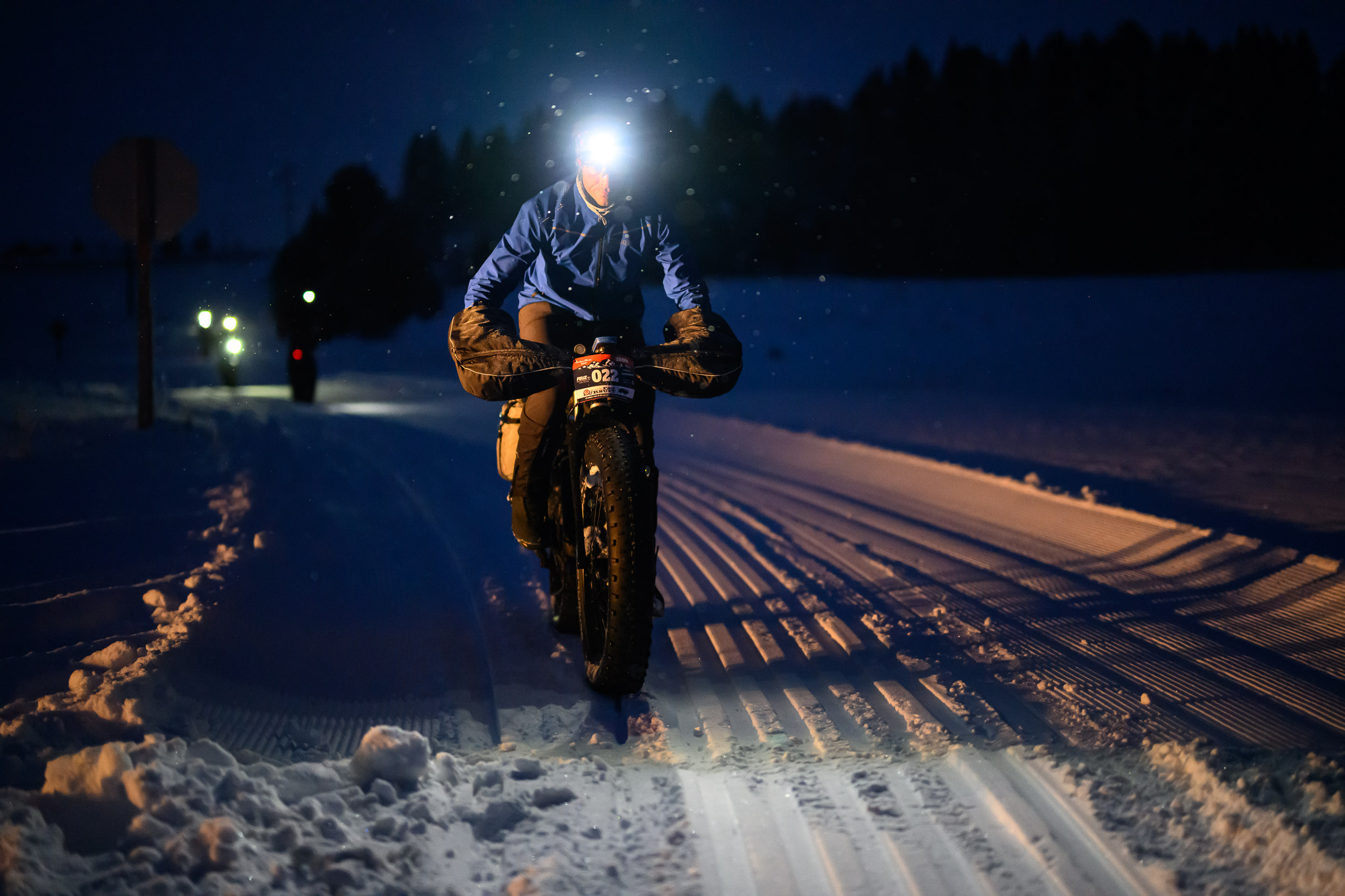 Former Women’s Fat Pursuit champion Rebecca Rush kept Strempke within reach for much of the race. Rebecca had some tire issues late into the night, and kept her second-place position all the way to the finish.