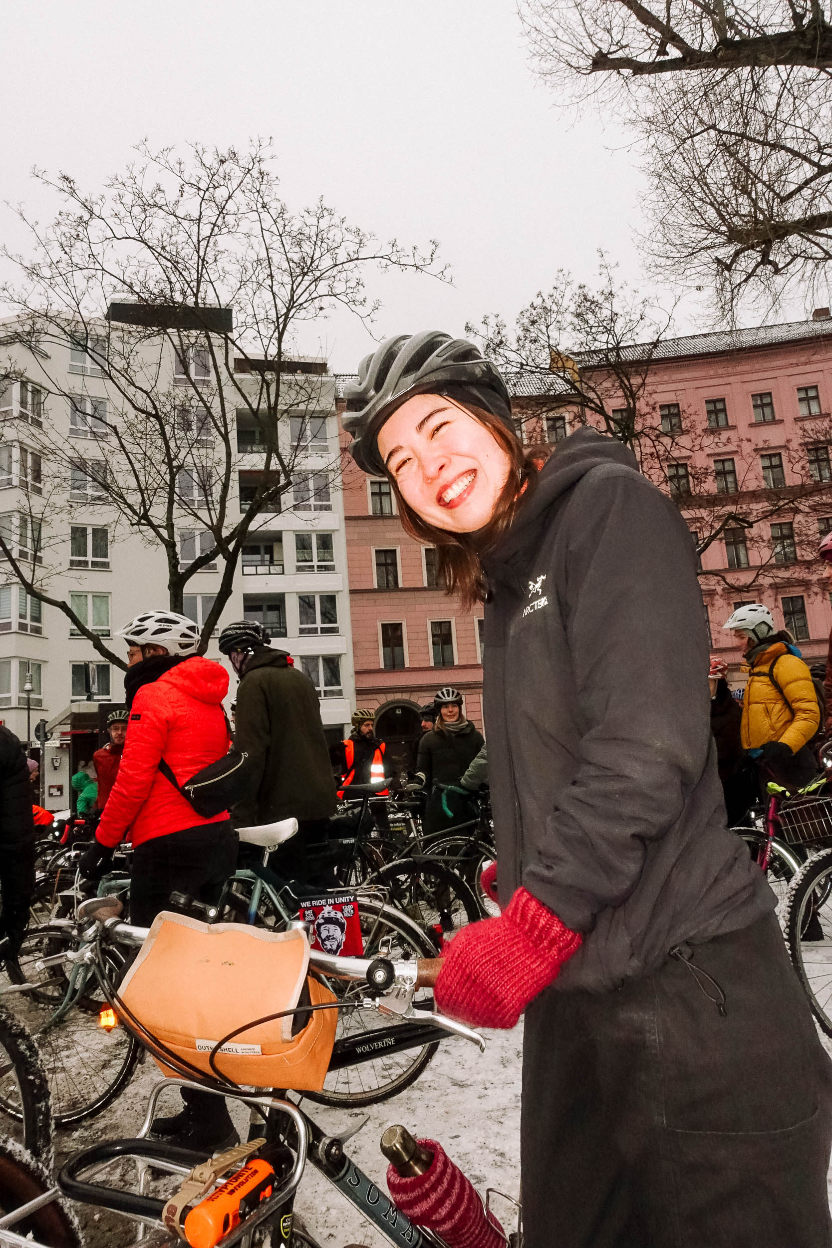 An astonishing 70+ riders rallied on Saturday, despite the freezing conditions, demonstrating that Berlin cyclists stand not only with Alex Pretti’s community but with all victims of ICE and the people of Minneapolis fighting the bipartisan deportation regime. Their fight is relevant to us, since in Germany, we also need to defend ourselves against similar racist demagogy as politics shift to the right across the spectrum, in which migrants, antifascists, and people who stand in solidarity with the Palestinians and other oppressed peoples are threatened by increasingly harsh repression, persecution, and deportation.