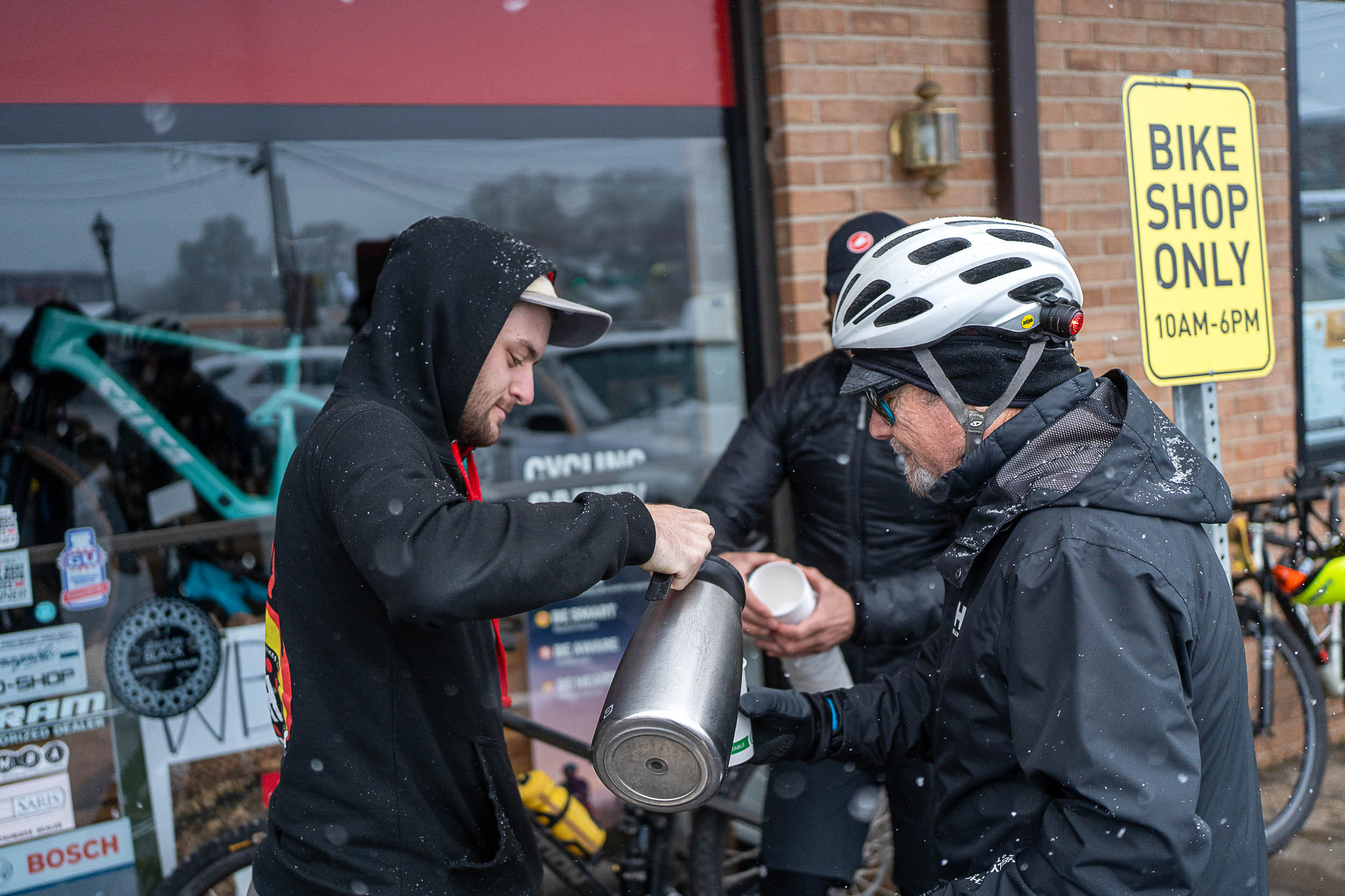 At the midpoint of the ride, we held a moment of silence and listened to the snow fall. I’m incredibly grateful to everyone who showed up, to Brian and the team at the Hub, and to Nick Dale from Condor Chocolates/Choco Coffee for providing hot coffee before and after the ride. I hope this outpouring of support from around the world gives Alex’s people some measure of comfort. And please know that while we rode for Alex, we have not forgotten the many others who have fallen victim to the current administration. Much love from Athens.