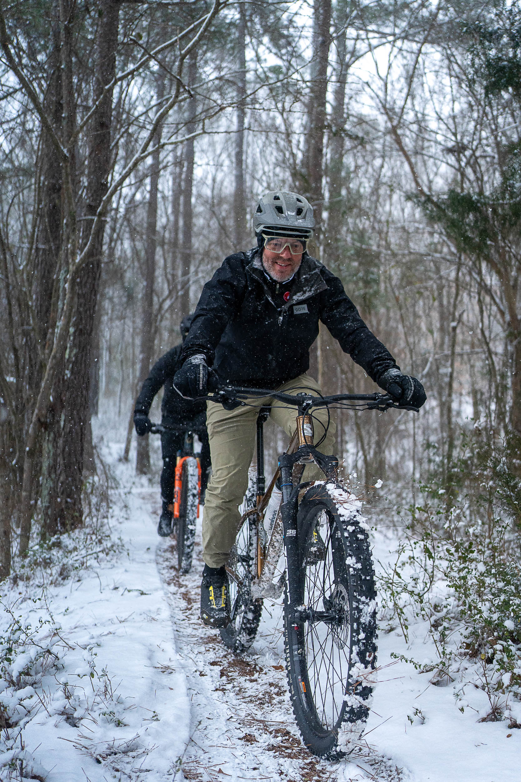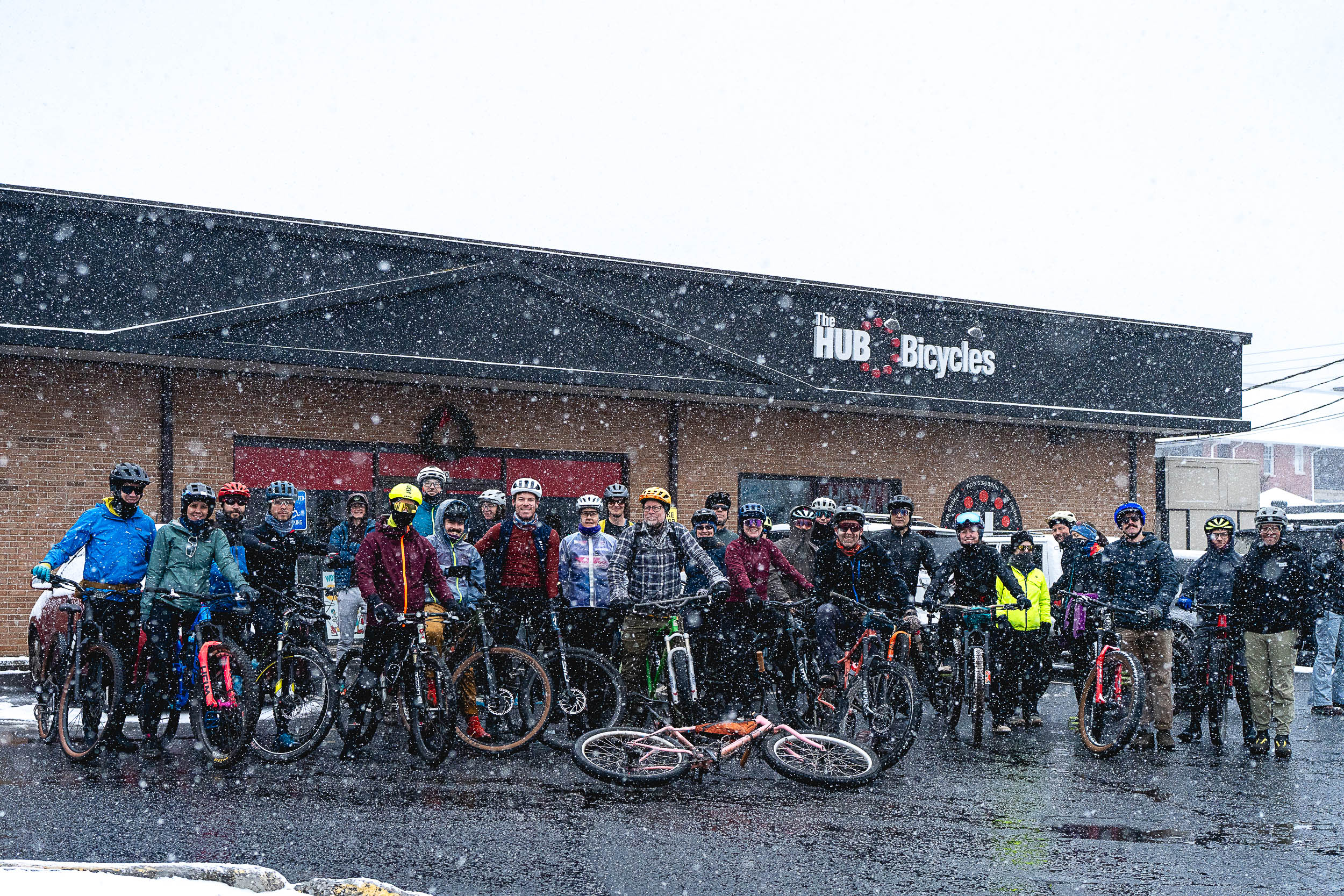 Athens bike shop, The Hub Bikes, is a friend and client of mine, so I called owner Brian Molloy and asked if we could host a ride from the shop. He agreed immediately, no questions asked. We put out the word on social media, and the response was fast and mostly very positive. The forecast called for snow, which felt like a sign—like a little piece of Minnesota had come down here. Also, because we don’t have much road plowing, we decided to make it a mountain bike ride to minimize risk.