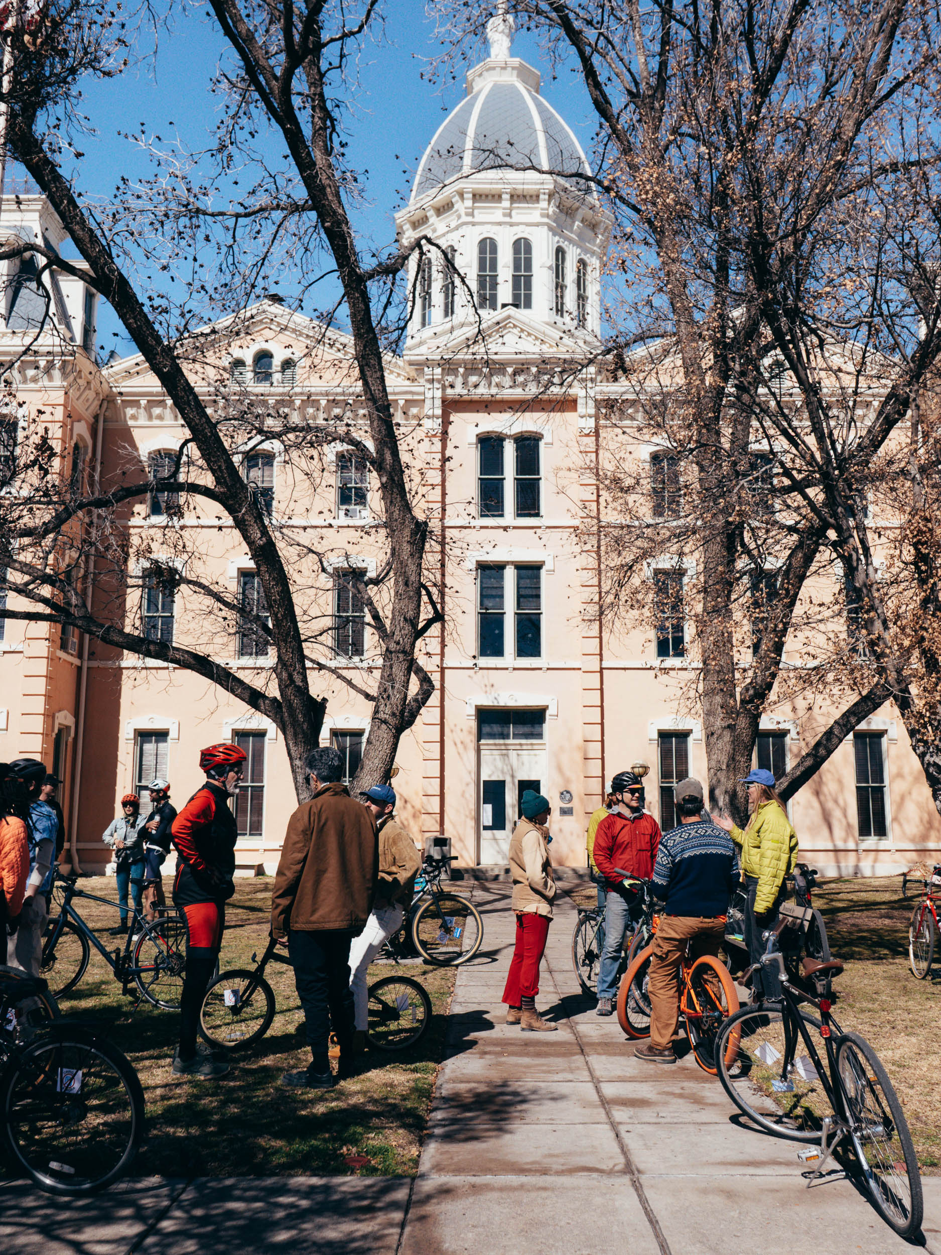 It was a no-brainer for Mark Scott to organize a ride for unity in Marfa. There’s a cycling community in this region, so it’s pretty common to see someone riding their bike around town or along the scenic Ranch Road 2810, also known as Pinto Canyon. Mark rides daily, participates in bike races, and hosts a weekly slow ride that encourages cyclists of all levels to join on Wednesdays (weather permitting). When he saw Casey Robertson’s post about the memorial ride on Instagram, he immediately wanted to be a part of it. He posted the flyer for the Marfa event and hoped people would show up.