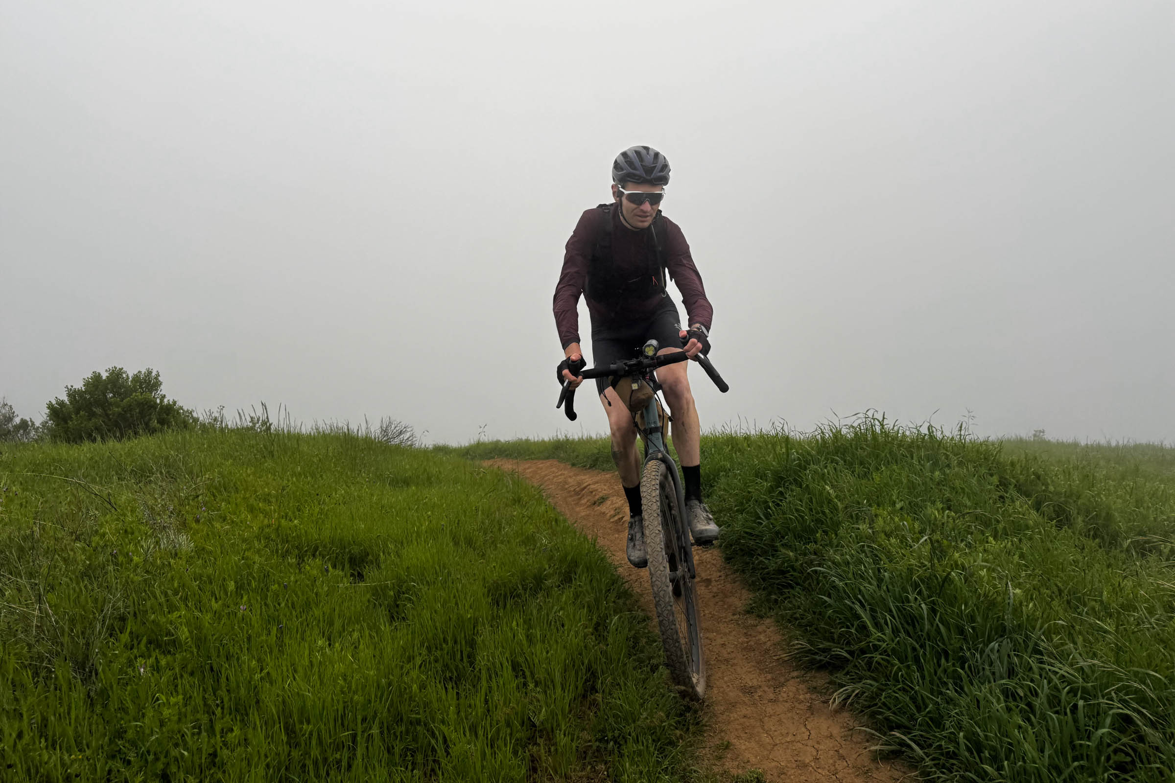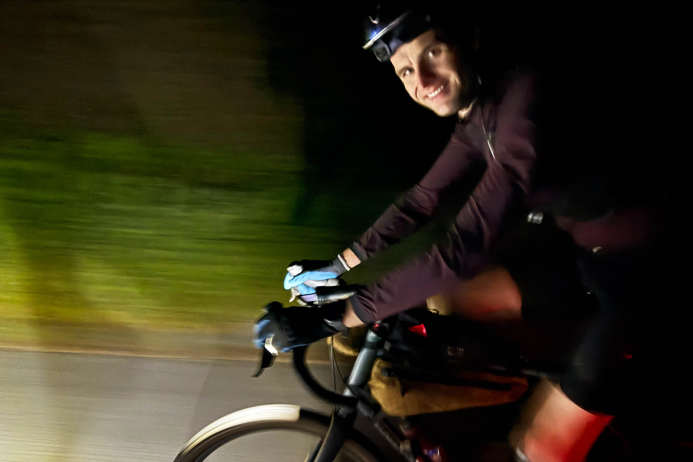 It’s a silver morning in Fairfax. I am on my gravel bike carrying a kilo of homemade carb mix, eight gels, 20 dates, two bottles, a power bank, headlight and headlamp, plus four batteries, a down vest, tights, a first aid kit, and an emergency blanket. Mark has handed me a bag of spaghetti with one meatball, which is tucked into the webbing of my camelbak.