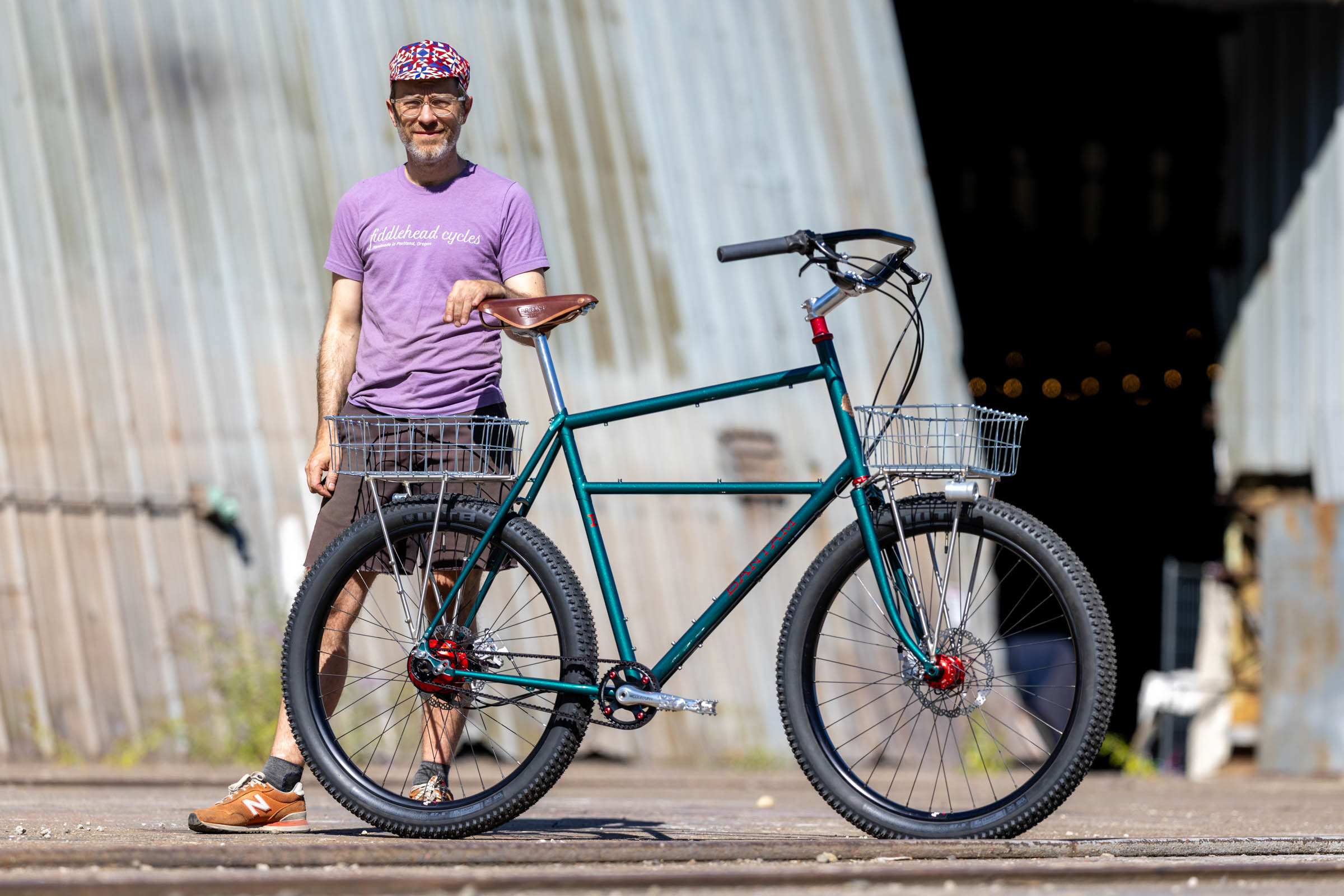 Despite topping out at 5’7”, Bob has somehow become known for building bikes for tall riders. Over the years, he has noticed that many of his customers don’t fall within the “normal” range of bike sizes, and bigger bike brands often fail to design bikes for folks outside of the bike sizing bell curve. Bob explained, “It’s a place where a custom builder like me can step in to help get people on bikes that actually fit them well.” This particular bike is designed for someone who is 6’7” tall, and it’s what Bob describes as a Travelall+, hence the plus-sized tires.